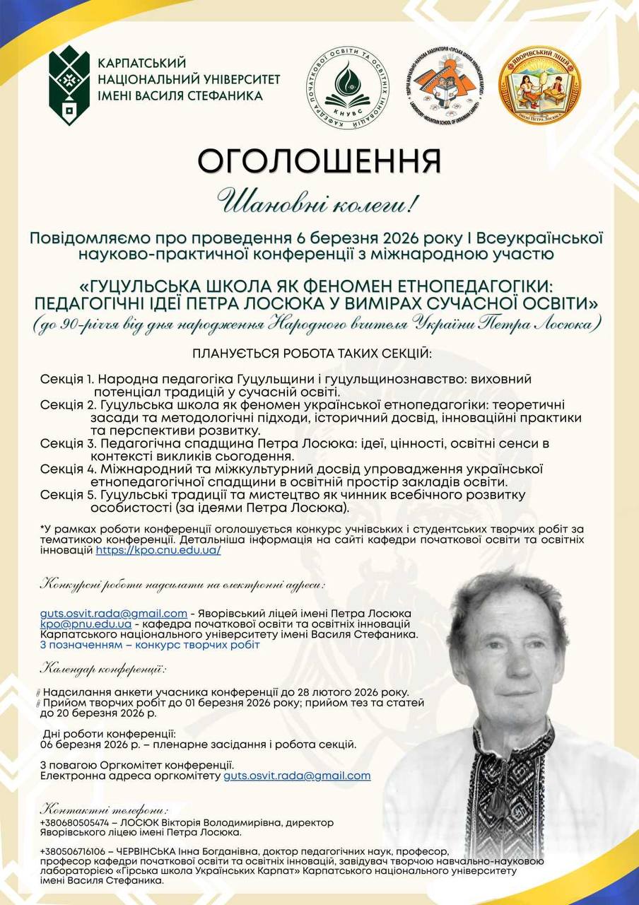 I Всеукраїнська науково-практична конференція з міжнародною участю «Гуцульська школи як феномен етнопедагогіки: педагогічні ідеї Петра Лосюка
