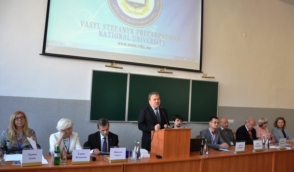 Розпочався захід урочистою академією. Проректор з наукової роботи університету, професор Андрій Загороднюк вручив диплом про присвоєння почесного звання «Почесний професор Прикарпатського національного університету» головному науковому співробітнику відділу історії педагогіки Інституту педагогіки НАПН України, доктору педагогічних наук, професору, академіку НАПН України Миколі Євтуху.
