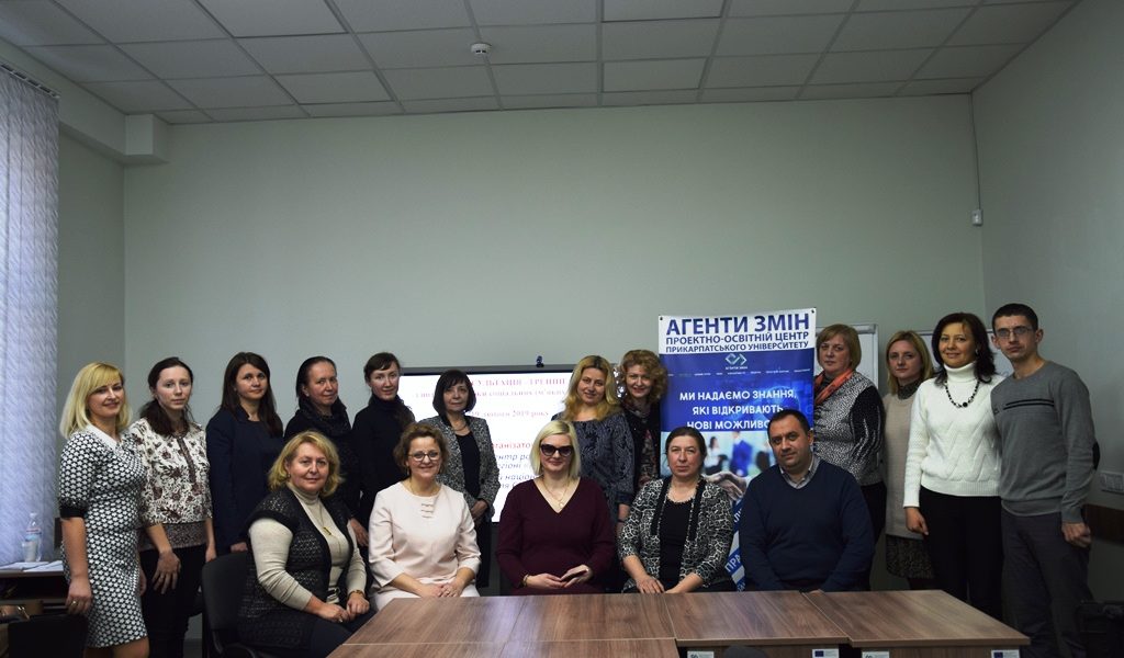 В офісі Проектно-освітнього центру «Агенти змін» Прикарпатського університету, створеного за секторальної бюджетної підтримки Євросоюзу, відбувся тренінг з питань розробки соціальних проектів. У заході взяла участь проректор з науково-педагогічної роботи університету Галина Михайлишин, яка водночас є головою Ради конкурсу проектів для студентів та аспірантів університету «Сьогодні креативна ідея – завтра реальна справа», представники кафедри соціальної педагогіки та соціальної роботи, кафедри соціально-економічних та природничих дисциплін Коломийського інституту Прикарпатського університету, кафедри педагогіки початкової освіти, а також фахівці проекту з кафедри фінансів.