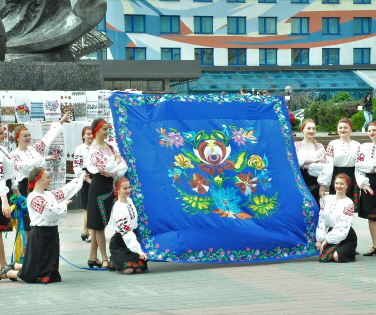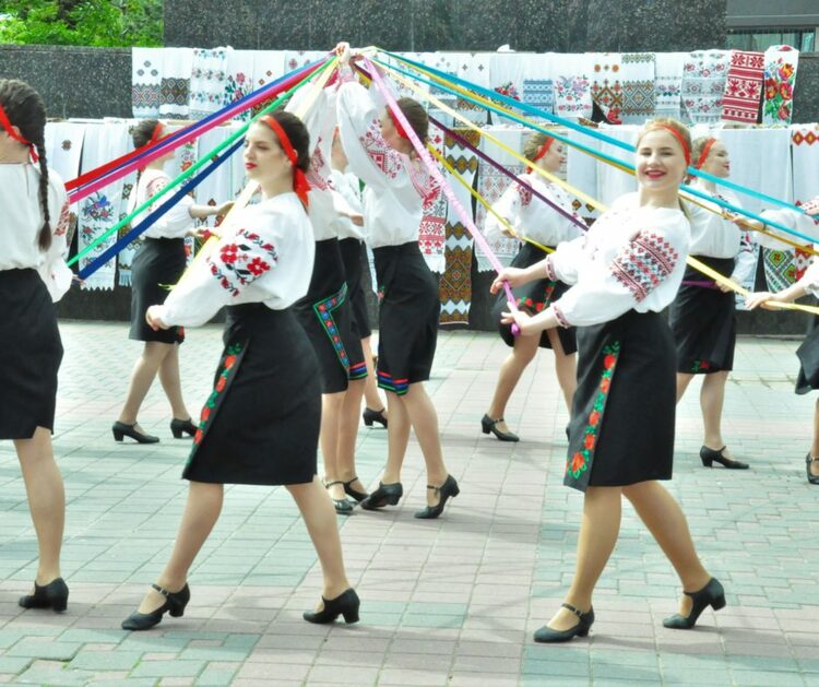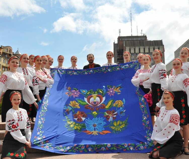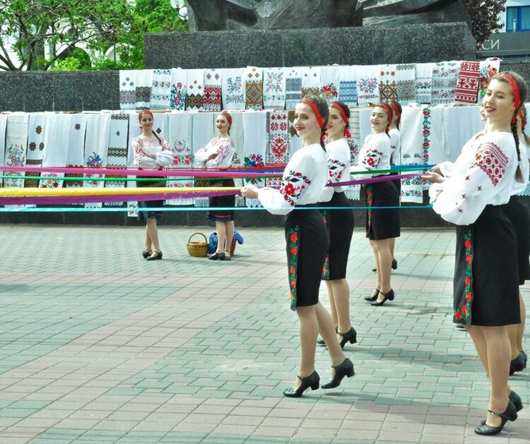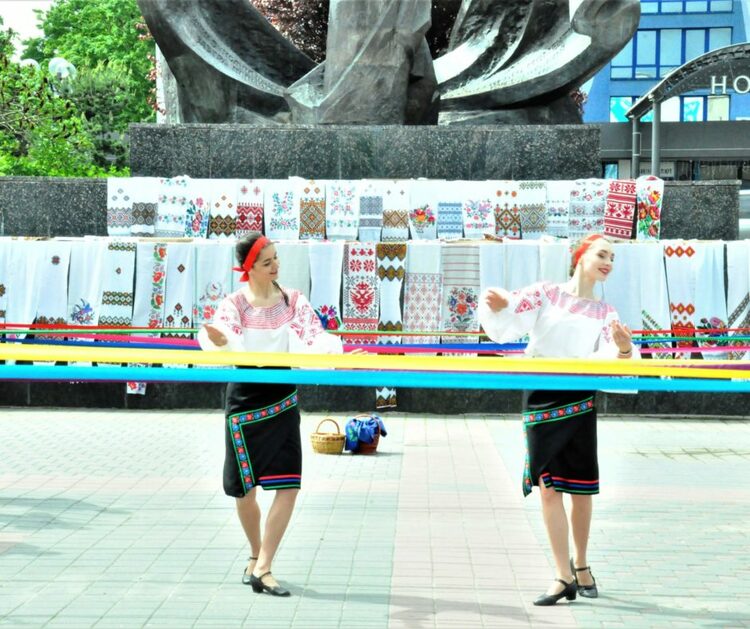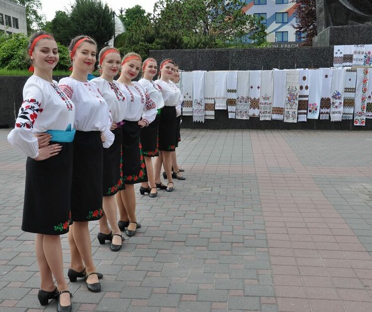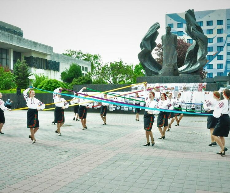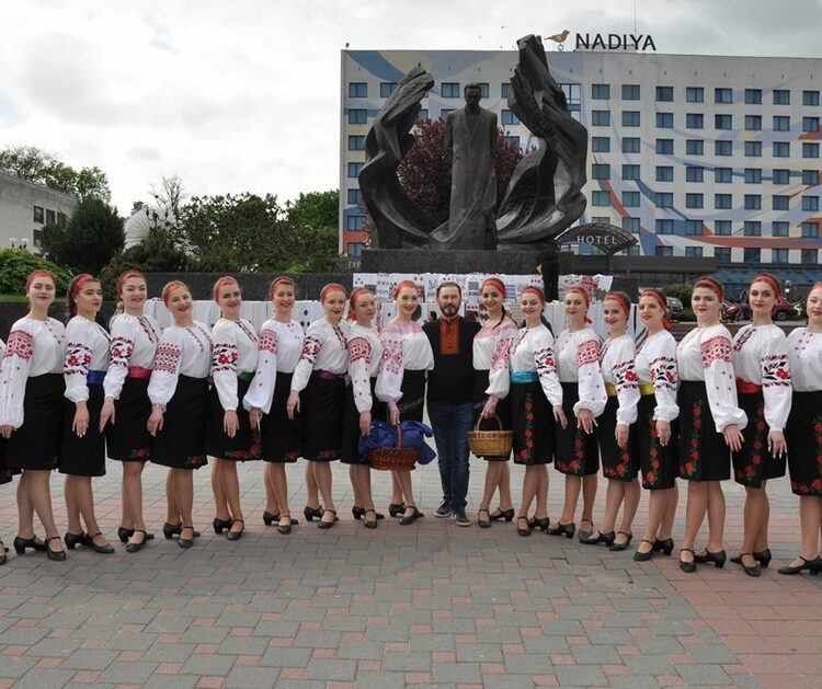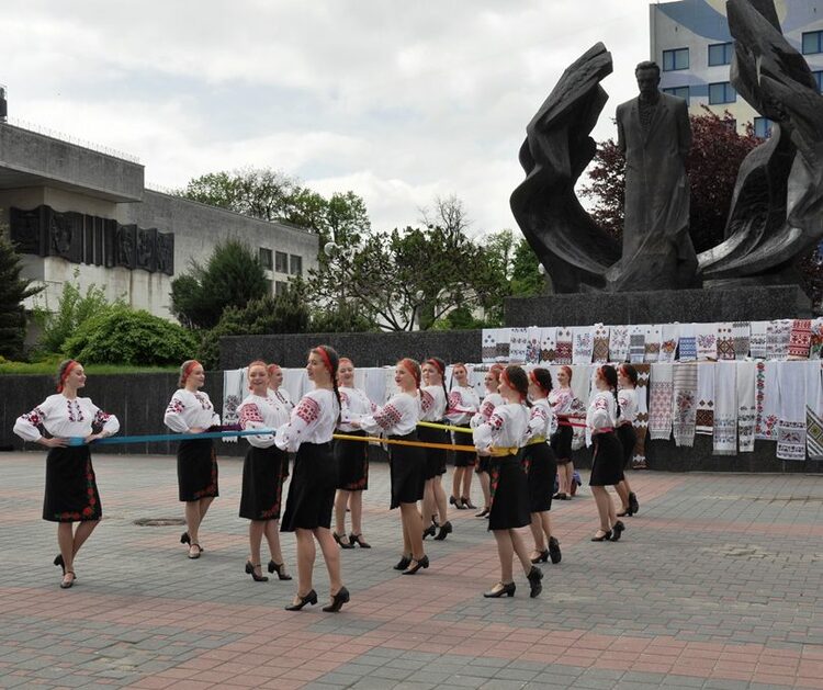 Сьогодні, 20 травня, на центральній площі біля пам’ятника Іванові Франкові в обласному центрі відбулося танцювальне дійство «Вишивальниці» у виконанні ансамблю танцю “Дивоцвіт” Навчально-наукового Інституту мистецтв Прикарпатського національного університету імені Василя Стефаника. Керівник ансамблю – старший викладач кафедри сценічного мистецтва і хореографії Юрій Скобель.