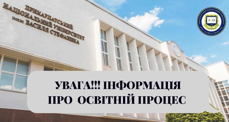 Враховуючи безпекову ситуацію в період дії військового стану з метою створення безпечних умов для здобувачів освіти та працівників університету, забезпечення безперервності навчання та діяльності структурних підрозділів університету відповідно до розпорядження №580 від 10.10.2022 року “Про організацію освітнього процесу та роботи працівників у жовтні 2022 року” освітній процес для всіх здобувачів освіти з 10 жовтня проходитиме в онлайн-форматі з використанням дистанційних технологій.
