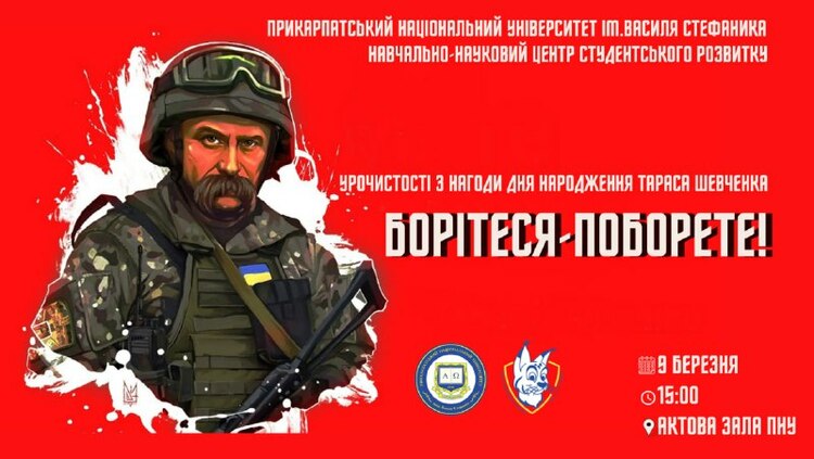 9 березня о 15:00 в актовій залі Прикарпатського національного університету відбудуться урочистості з нагоди дня народження Тараса Шевченка.