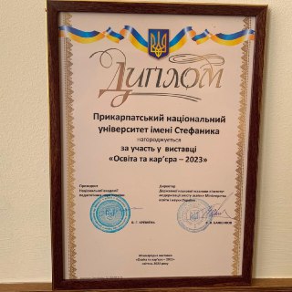 Прикарпатський національний університет імені Василя Стефаника отримав диплом про участь у Міжнародній виставці «Освіта та кар’єра 2023».