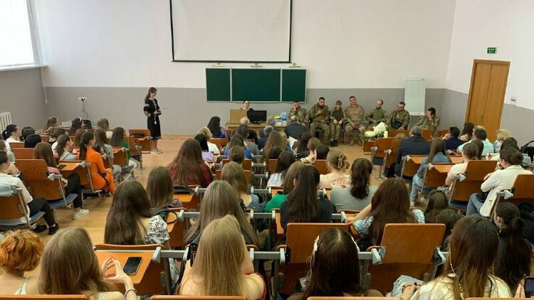 З вітальним словом на початку до присутніх звернулася Оксана Рубаняк: «Ще два роки тому, ніхто б не міг подумати, що ми матимемо повномасштабну війну та над нами літатимуть ракети, щодня будуть загиблі цивільні та військові. Я вірю всім серцем, що у нашій країні буде мир і тоді вам потрібно буде відбудовувати нашу країну. У когось обов’язок зараз захистити Україну, а у вас буде обов’язок її розбудовувати та розвивати. Вдячна усім за свідому позицію та за те, що допомагаєте нашому підрозділу всіма можливими силами. Надіюся, ми скоро знову зустрінемося під мирним небом!».