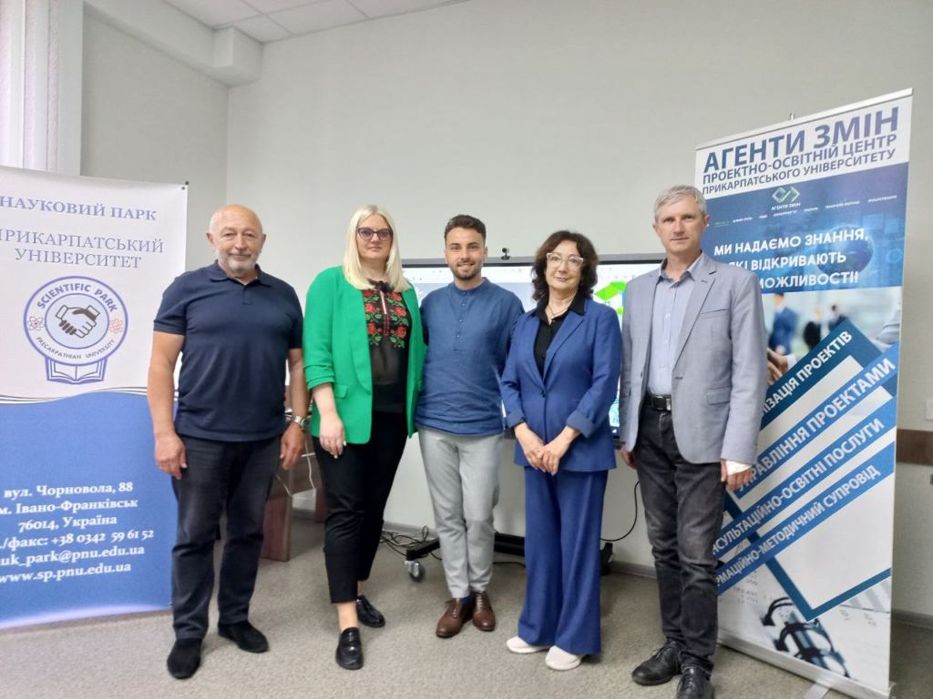 В офісі Проектно-освітнього центру «Агенти змін» ПНУ відбулась зустріч із представниками Всеукраїнської Інноваційної екосистеми «Sikorsky Challenge Україна» (SCU) – відкритої інноваційної екосистеми, що об’єднує інституції країни, зацікавлені у розвитку української інноваційної економіки: університети, наукові установи, органи державної влади та місцевого самоврядування, бізнес-компанії, фонди і громадські організації.