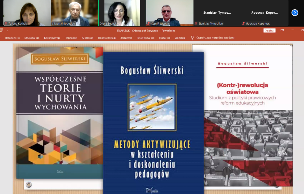 На базі Центру інноваційних освітніх технологій «PNU EcoSystem» Прикарпатського національного університету імені Василя Стефаника відбулася відкрита онлайн-лекція для здобувачів ступеня доктора філософії (PhD) усіх спеціальностей запрошеного професора Богуслава Сліверського – доктора габілітованого, професора звичайного факультету педагогічних наук Лодзького університету та Академії спеціальної педагогіки у Варшаві, Почесного голови Комітету педагогічних наук Польської академії наук на тему: «Альтернативна освіта у науковому дискурсі».