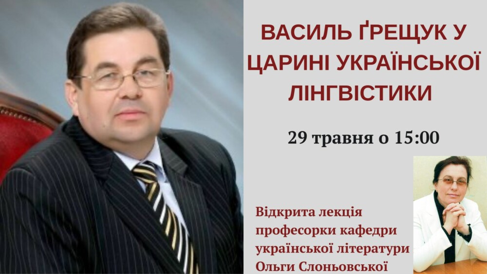 Тема лекції: «Василь Ґрещук у царині української лінгвістики». Її прочитає кандидат педагогічних наук, професор кафедри української літератури Ольга Володимирівна Слоньовська.