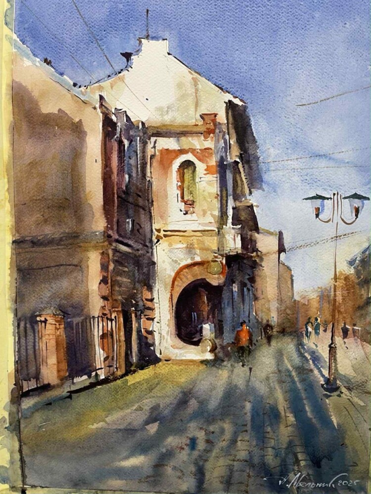 Митець поділився власним досвідом творчої діяльності, розповів про особливості роботи з акварельними фарбами та методи виконання творів у цій техніці. Упродовж зустрічі він продемонстрував етапи створення пейзажу історичної частини міста Івано-Франківська, акцентуючи увагу на нюансах кольорової гами, грі світла й тіні та ролі настрою в картині.