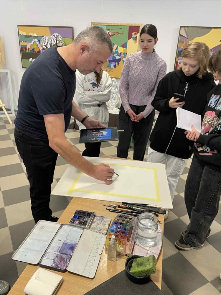 Студенти активно долучалися до обговорення, ставили численні запитання про технічні прийоми, пошук власного стилю й натхнення. Атмосфера творчості та безпосереднього спілкування з митцем сприяла тому, що молоді художники відчули живий зв’язок між теоретичними знаннями й практикою.