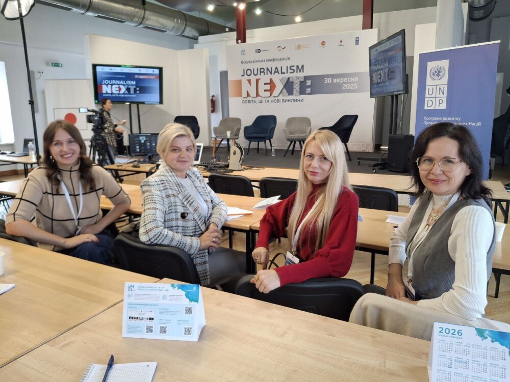 Викладачки кафедри журналістики Карпатського національного університету імені Василя Стефаника Соломія Хороб, Руслана Савчук, Галина Пристай та Ірина Копистинська відвідали Всеукраїнську конференцію “Journalism NEXT: освіта, ШІ та нові виклики”, що відбулася днями у стінах Києво-Могилянської академії.