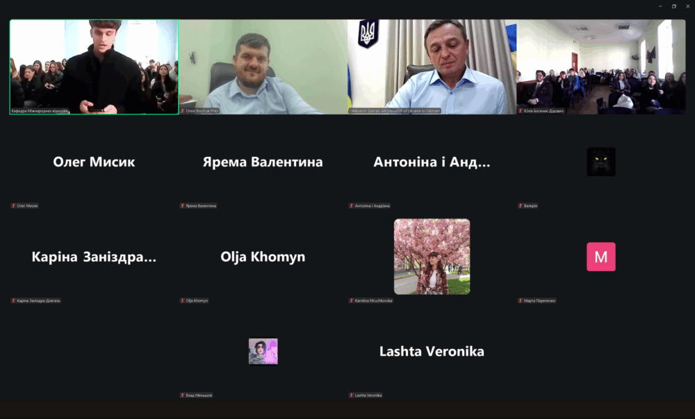 23 жовтня в Карпатському національному університеті імені Василя Стефаника відбулася зустріч студентів спеціальності “Міжнародні відносини” із Надзвичайним і Повноважним Послом України у Соціалістичній Республіці В’єтнам та Надзвичайний і Повноважний Посол України в Королівстві Камбоджа за сумісництвом Олександром Вікторовичем Гаманом.
