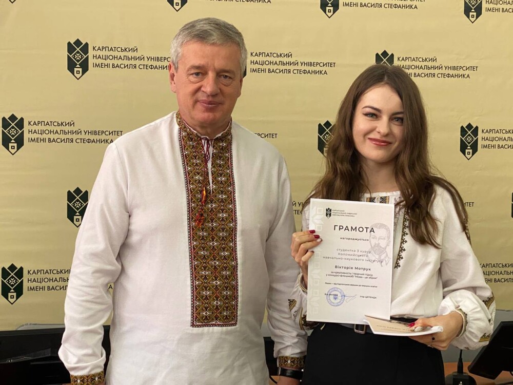 Вікторія Мотрук, студентка Коломийського навчально-наукового інституту — грамота за креативність і творчий підхід.