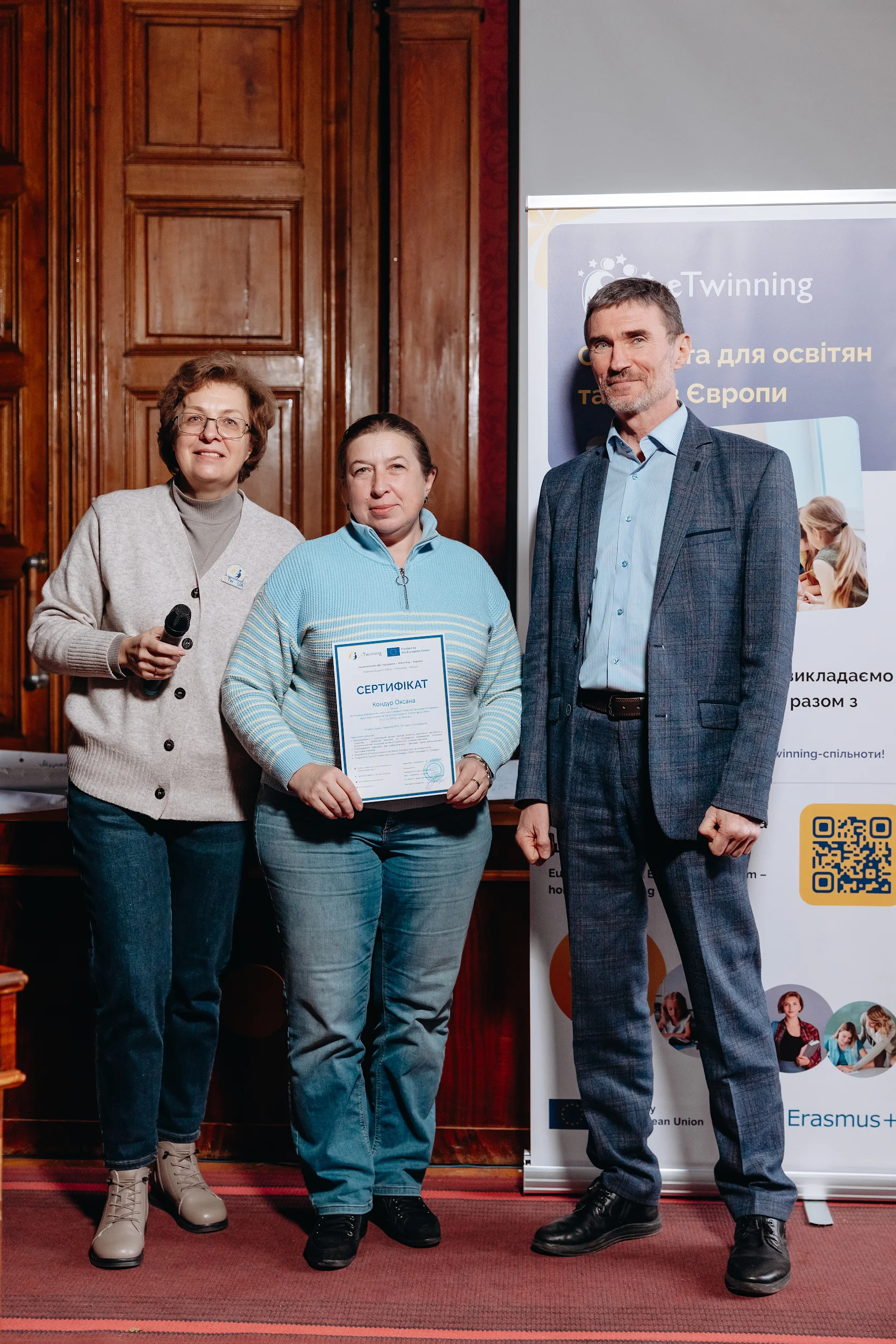 У межах першої сесії було представлено здобутки українських університетів у реалізації Програми eTwinning/Erasmus+. Представники закладів вищої освіти поділилися власним досвідом упровадження інноваційних освітніх практик, інтеграції міжнародних проєктів у підготовку майбутніх учителів та розвитку міжінституційної співпраці. Особлива увага була приділена ефективним моделям студентських і викладацьких ініціатив та чинникам, що сприяють підвищенню якості педагогічної освіти в умовах євроінтеграції.