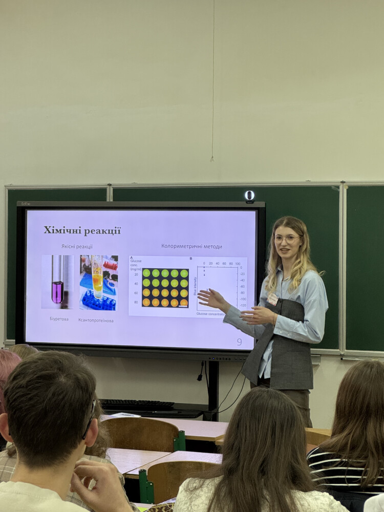 Після цього учасники відвідали лабораторії кафедри, а згодом прослухали лекцію «Як біохімія робить невидиме видимим». Під час перерв школярі активно спілкувалися з викладачами та студентами, дізнаючись більше про роботу біохіміків і біотехнологів та про перспективи навчання в цій галузі.