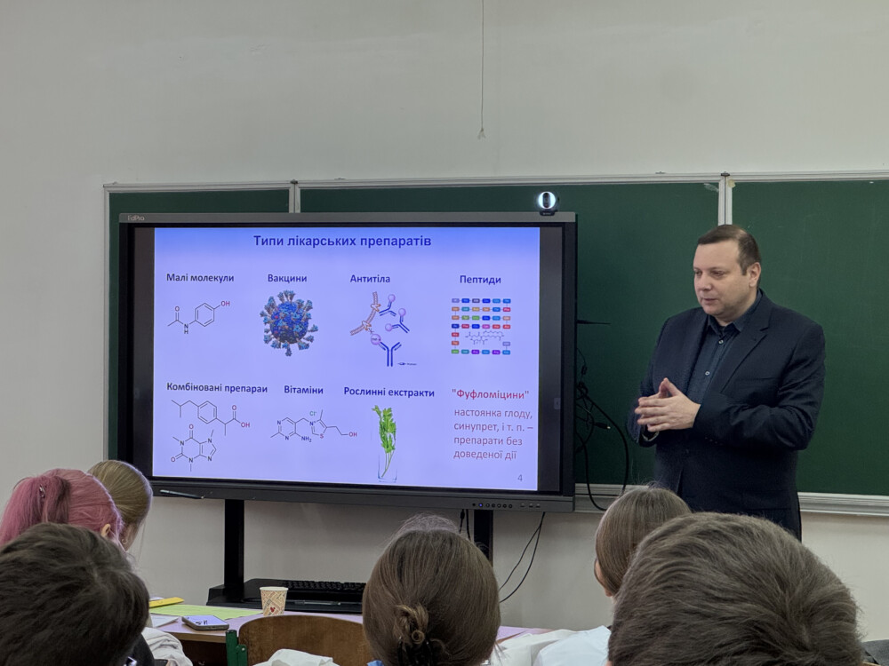 Після обіду школярі прослухали лекцію доцента Володимира Швадача «Біохімія розробки ліків», а завершальною стала лекція CEO наукового музею «Нова енергія» Сергія Максим’юка «Штучний інтелект як особистий асистент».
