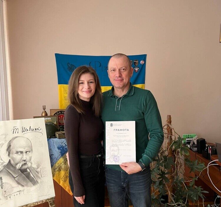 Грамоту та памʼятні подарунки вручила асистентка кафедри словʼянських мов Факультету філології Галина Васильків.