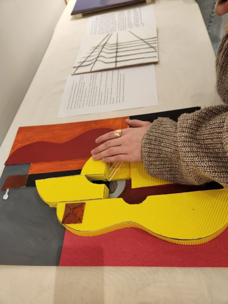 Це творчий звіт студентів старших курсів спеціальності «дизайн», що працюють за програмою Центру дослідження стратегій універсального дизайну КНУВС. До експозиції ввійшли найперше спеціальні тактильні адаптації творів світового мистецтва й власних фото досліджень, а також емоційні станкові композиції, що демонструють рефлексії молодих людей на об’єктивну реальність.
