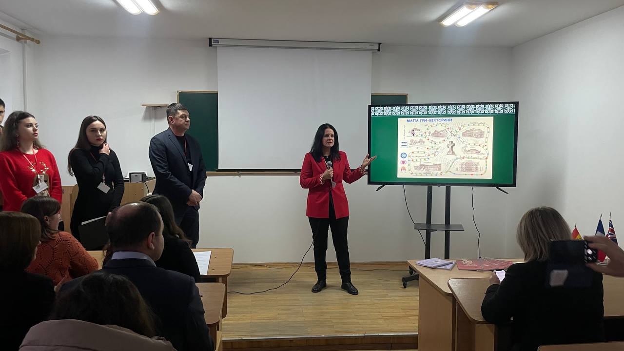 Далі учасники переглянули презентаційний ролик про університет, який занурив їх у академічне та культурне життя закладу. Наступним елементом програми став університетський квест, який провела студентка 4 курсу факультету іноземних мов, івент-менеджер Центру кар’єри Мар’яна Данилюк.