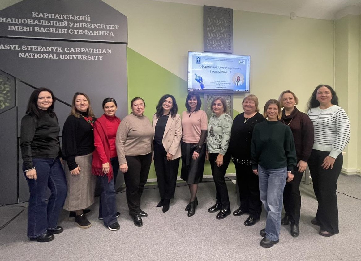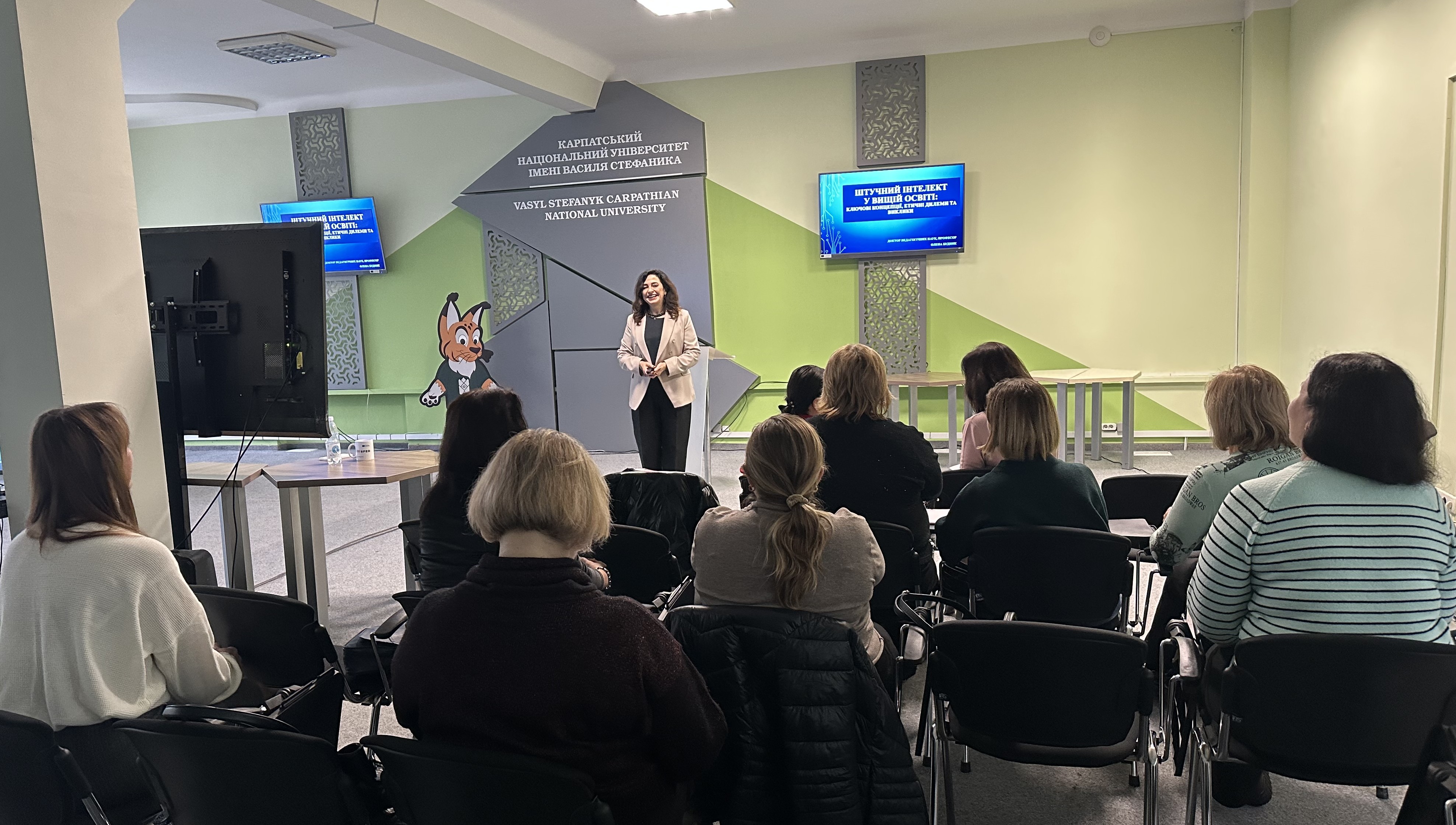 У період з 4 по 16 грудня на базі Центру інноваційних освітніх технологій «PNU EcoSystem» Карпатського національного університету проходили курси підвищення кваліфікації для науково-педагогічних працівників на тему «Інтеґрація штучного інтелекту в освітній процес: від теорії до практики». Одночасно дві групи (очна та дистанційна) викладачів вивчали методи застосування штучного інтелекту у науковій і освітній діяльності. До курсів було залучено 60 учасників, більшість з яких –  представники Карпатського національного університету імені Василя Стефаника, а також з інших університетів: Львівський національний університет імені Івана Франка, Херсонський державний університет, Черкаський національний університет імені Богдана Хмельницького, Івано-Франківський національний медичний університет, Західноукраїнський національний університет, Волинський національний університет імені Лесі Українки, Чернівецький національний університет імені Юрія Федьковича, Коломийський навчально-науковий інститут, Інститут екології Карпат, Інститут ботаніки ім. М.Г. Холодного НАНУ.