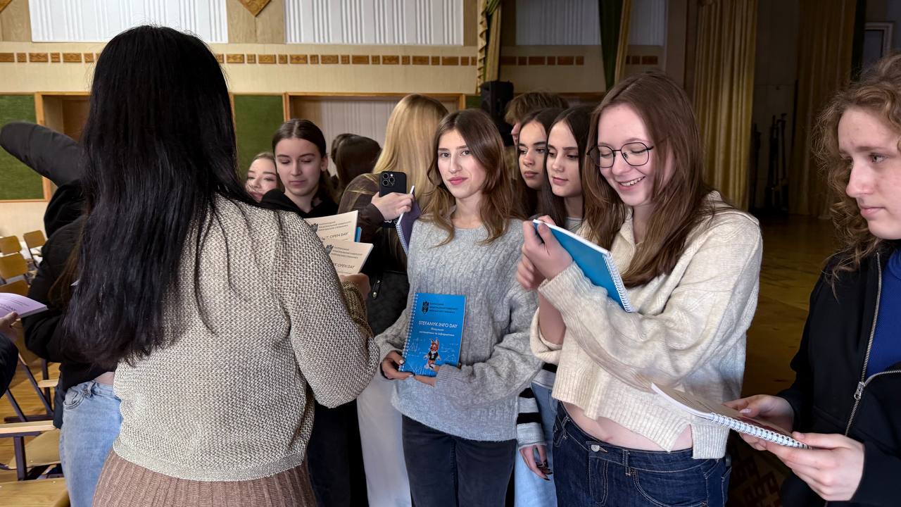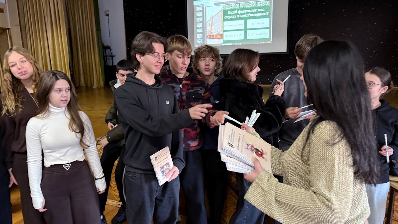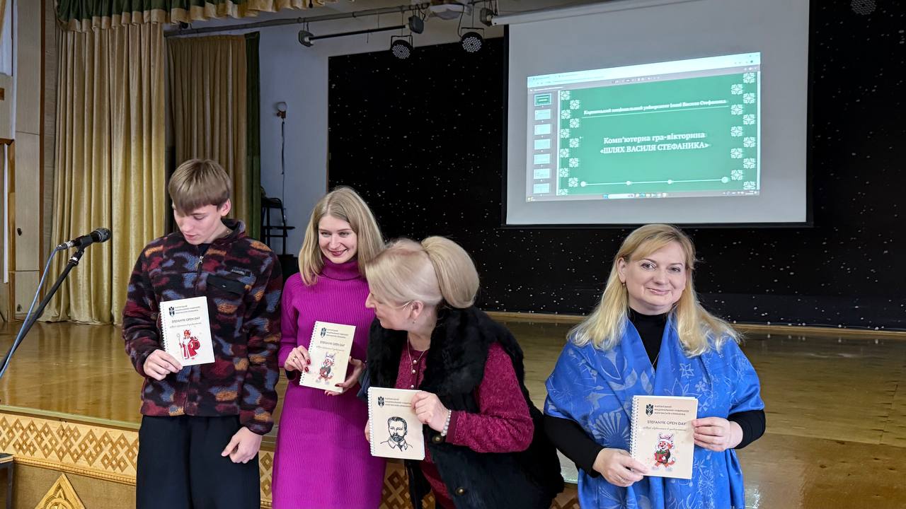 Учні 10-11 класів активно відповідали на питання, поділившись на три команди, з цікавістю в інтерактивній формі досліджуючи життя та творчість видатного українського генія Василя Стефаника, патрона університету.