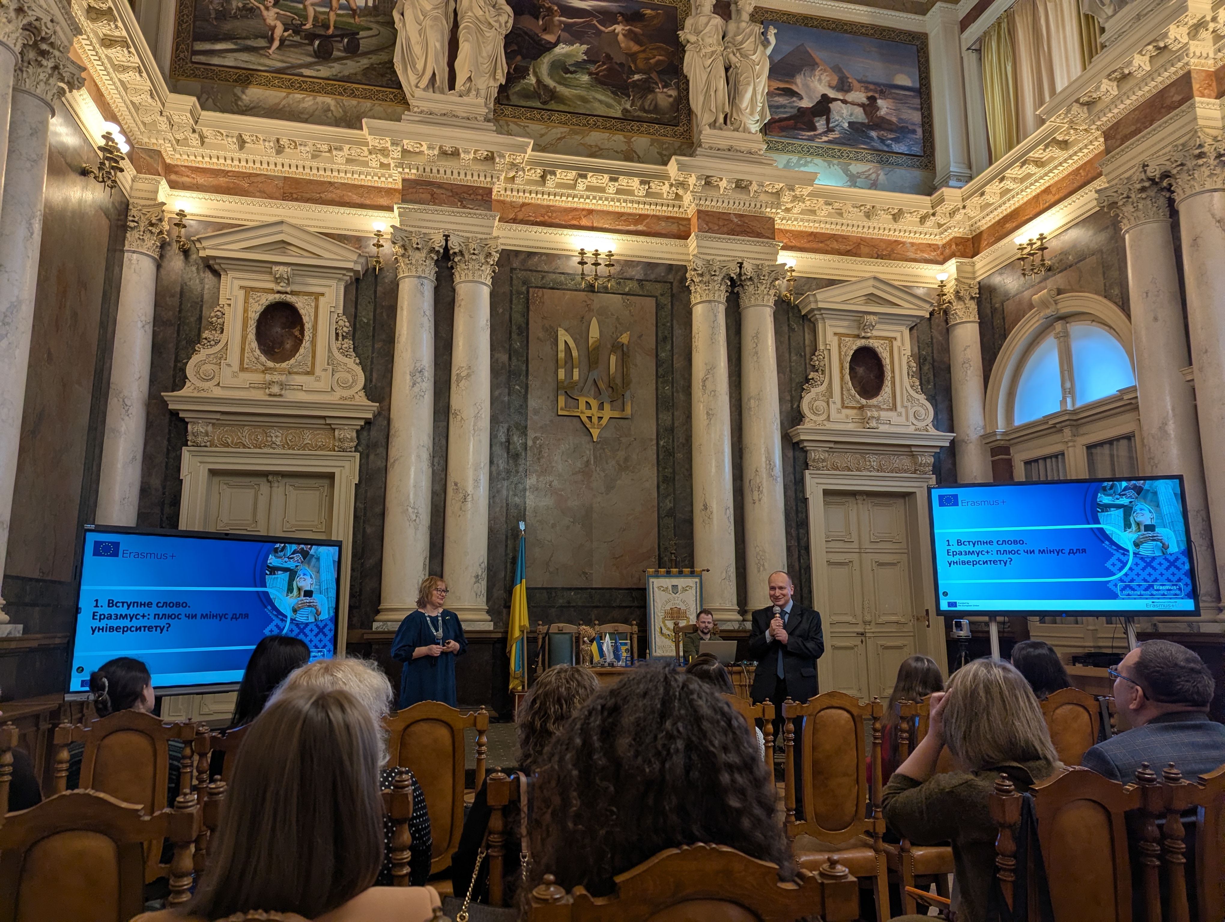 Тренінг провели представниці Національного Еразмус+ офісу в Україні Світлана Шитікова та Катерина Жданова. Цікавою була доповідь Наталії Бутич, Regional Coordinator Eastern Europe програм DAAD (Leibniz University Hannover), яка дала розуміння особливостей залучення іноземних університетів як партнерів у рамках проєктів.