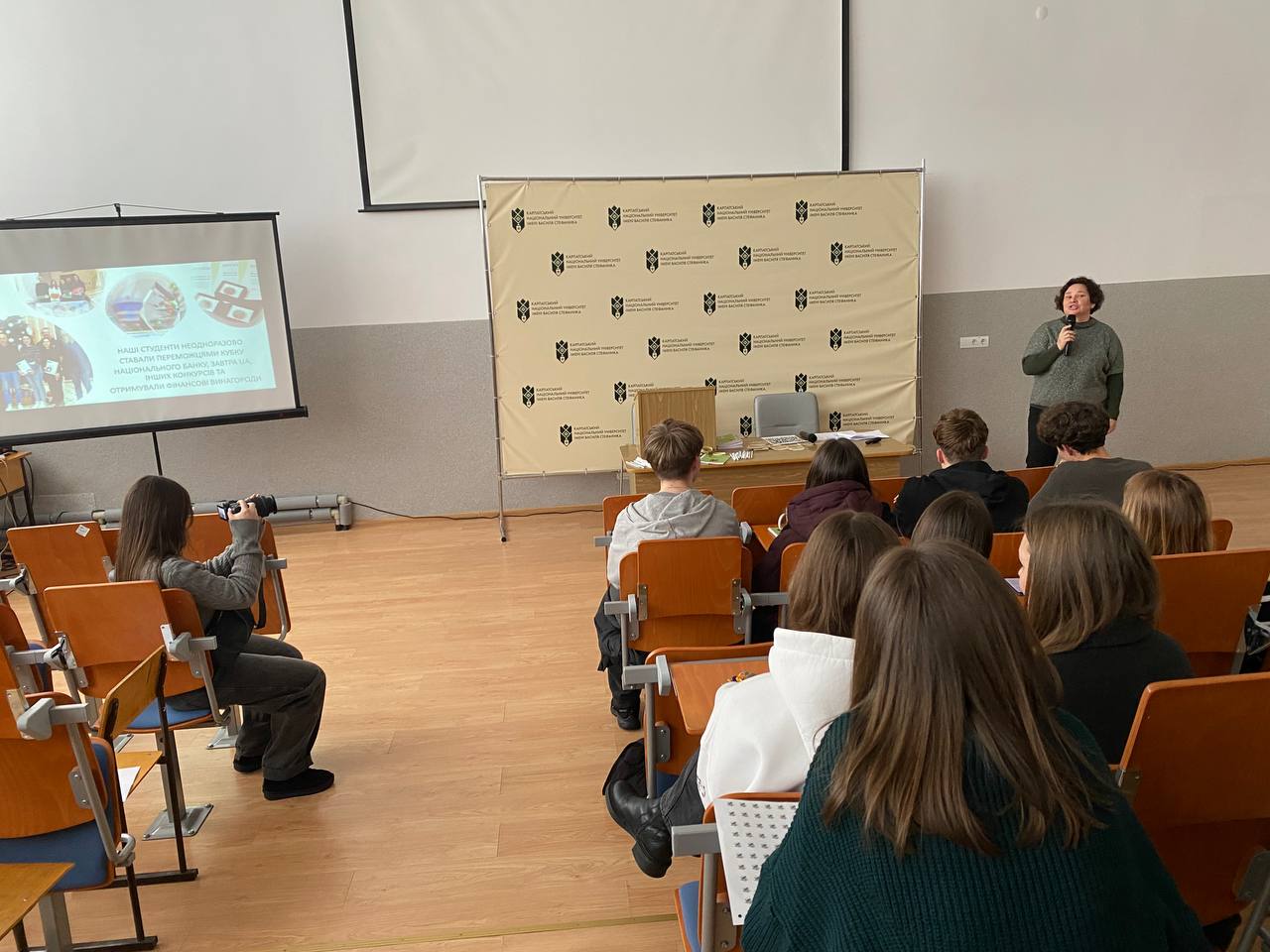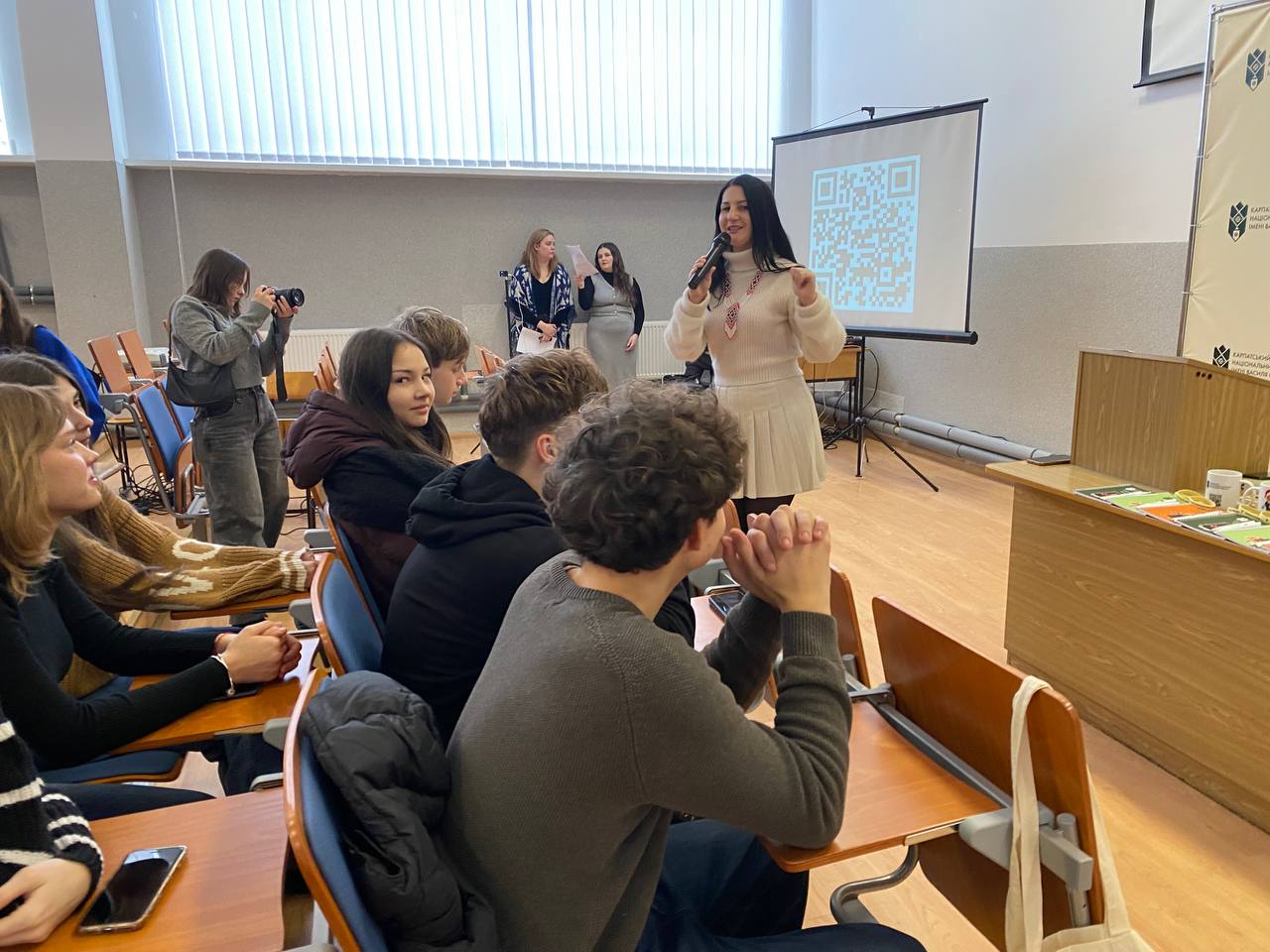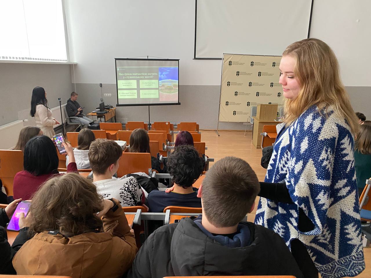Учасники заходу долучилися й до інтерактивної частини: представниці центру Ірина Воробець і Марʼяна Данилюк провели пізнавальну вікторину про університет, під час якої найактивніші учасники отримали цінні подарунки.
