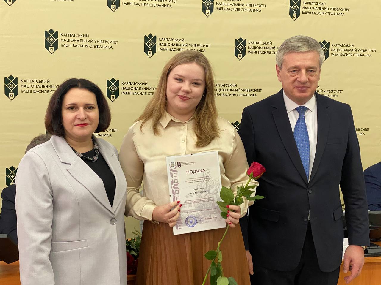 Після цього ректорка університету Валентина Якубів та голова Вченої ради Ігор Цепенда урочисто вручили почесні грамоти Володимиру Розвадовському, Івану Яремію, Омеляну Поплавському, Володимиру Гризі, Катерині Копорх та Івану Благуну.