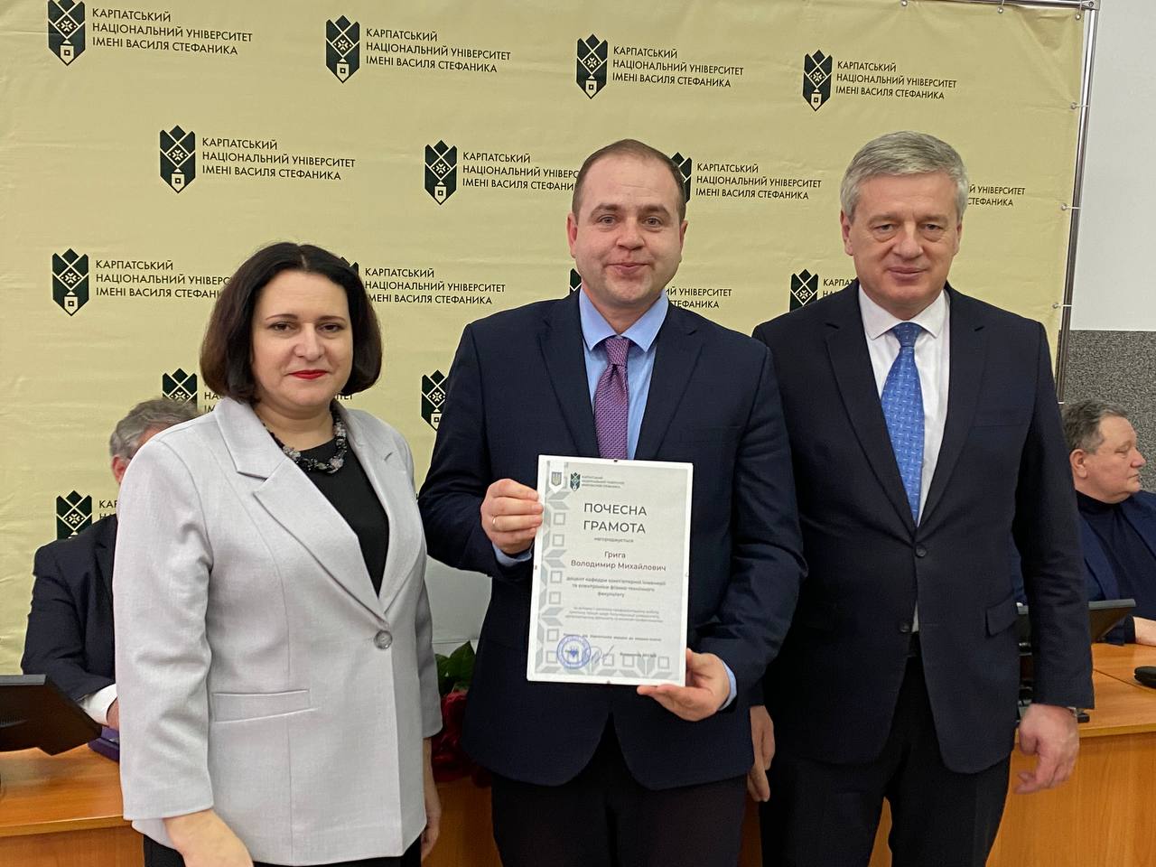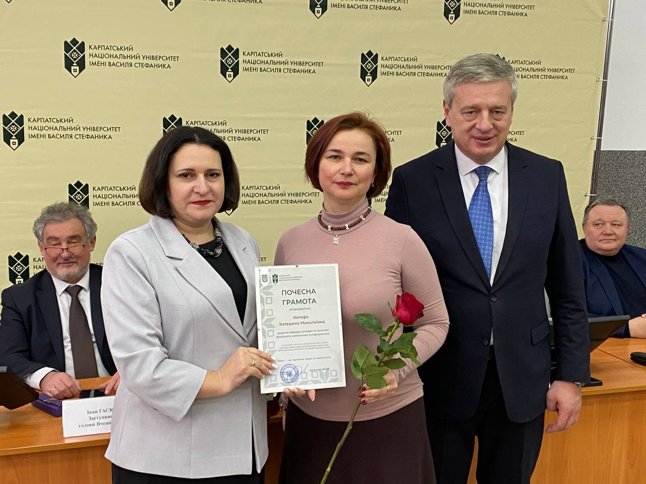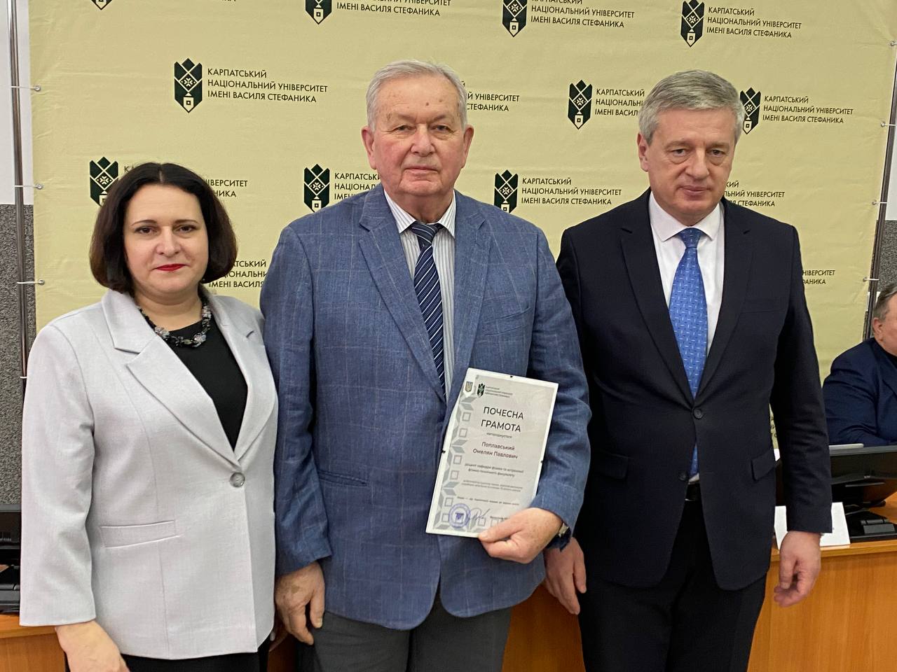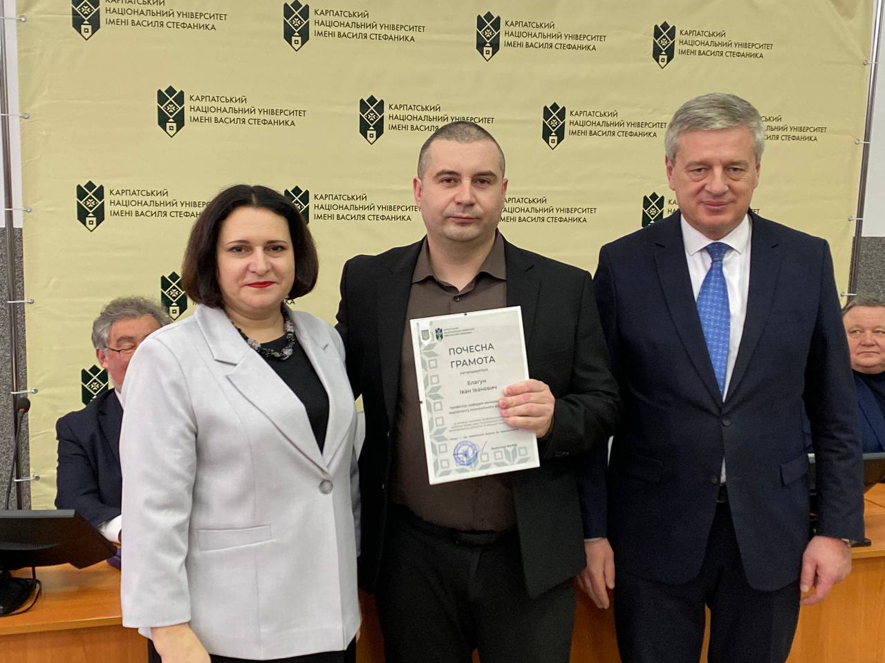 Після цього ректорка університету Валентина Якубів та голова Вченої ради Ігор Цепенда урочисто вручили почесні грамоти Володимиру Розвадовському, Івану Яремію, Омеляну Поплавському, Володимиру Гризі, Катерині Копорх та Івану Благуну.