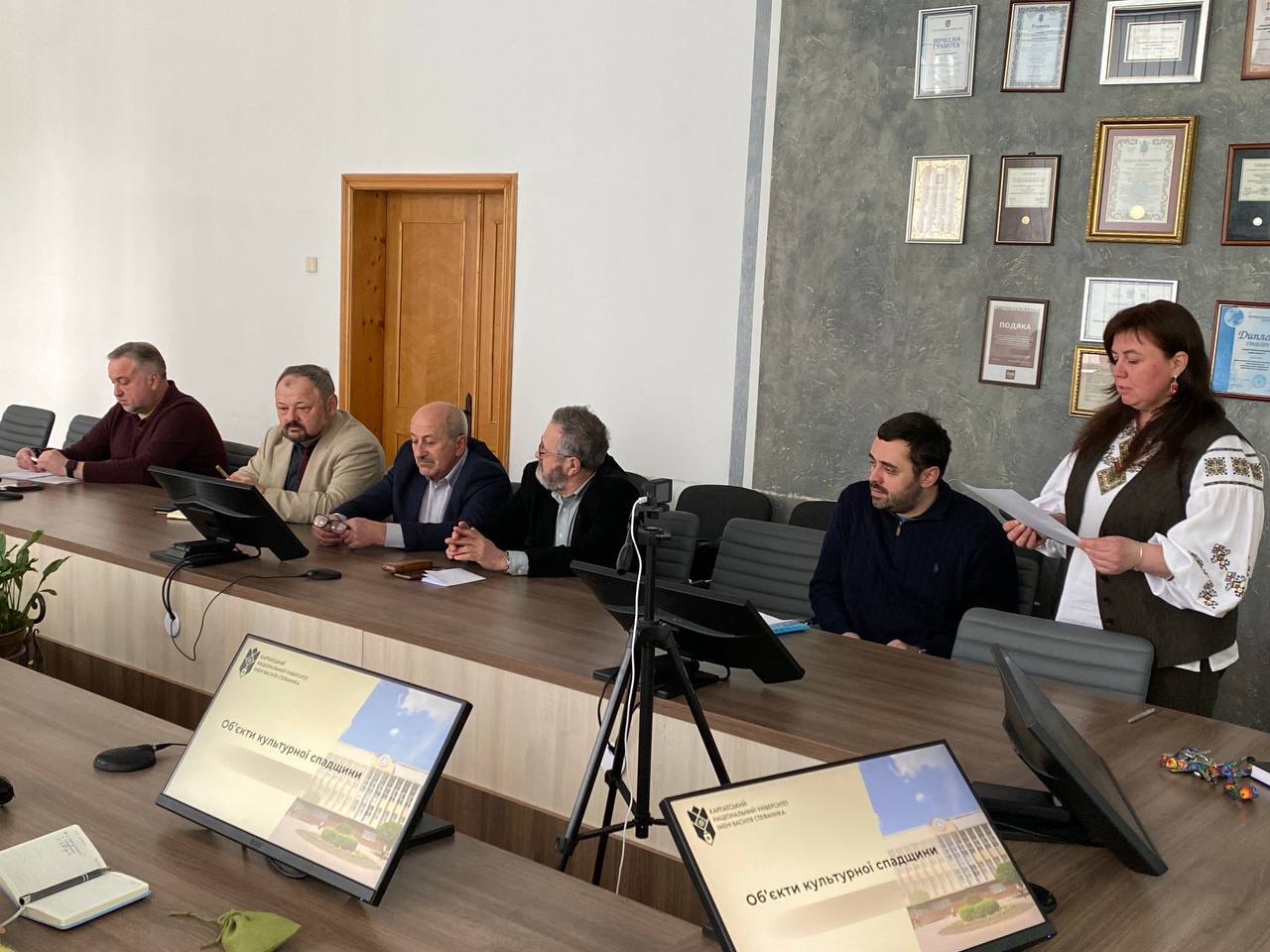 Сьогодні в Карпатському національному університеті імені Василя Стефаника відбулася зустріч на тему «Об’єкти культурної спадщини під охороною Карпатського національного університету імені Василя Стефаника», учасниками якої стали працівники університету, директор Музею мистецтв Прикарпаття, представники Івано-Франківської обласної організації Національної спілки художників України та відділу охорони культурної спадщини Івано-Франківської міської ради.