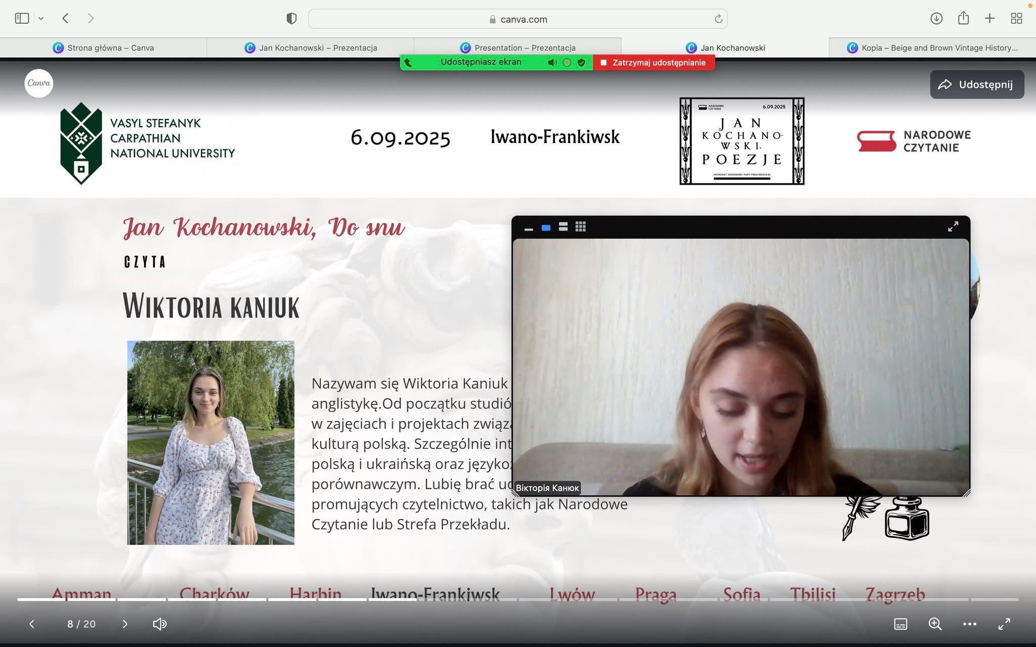 Завдяки модератору заходу п. Саманті Бусіло, старшого викладача кафедри слов’янських мов, та викладачів Дарії Мицан, Оксани Корпало, завідувачки кафедри Наталії Щербій та заступниці декана Ольги Лазарович вдалося об’єднати студентів та викладачів з українських університетів – Карпатського національного університету імені В. Стефаника, Харківського національного університету імені В. Каразіна, Болгарії, Чехії, Китаю, Хорватії, Грузії, Йорданії.