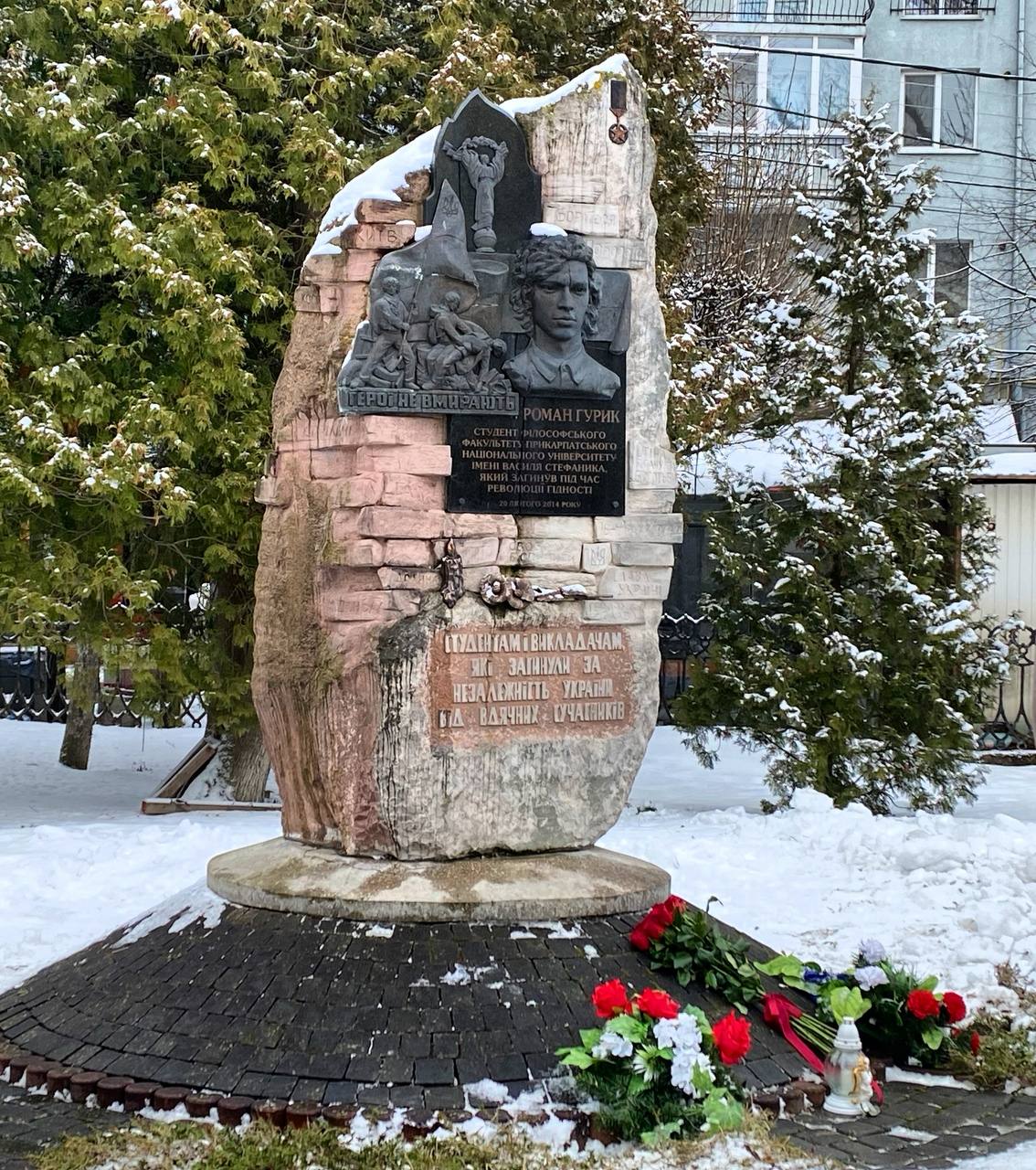 У Карпатському національному університеті імені Василя Стефаника традиційно зібралися біля пам’ятного Обеліску, присвяченого студентам і викладачам, які загинули у боротьбі за незалежність України, щоб віддати шану вічно молодому студентові філософського факультету — Роману Гурику.