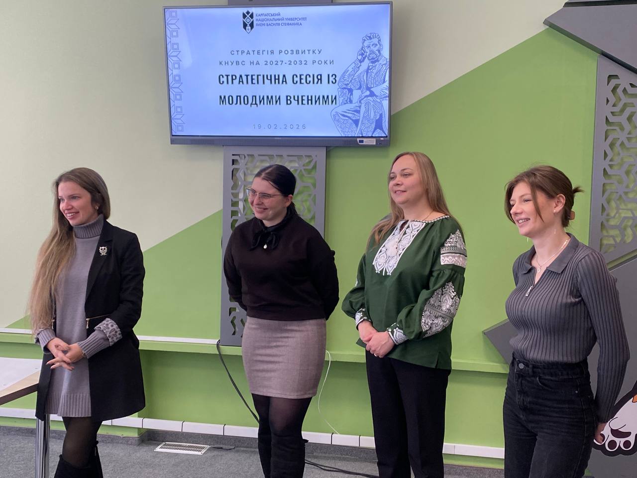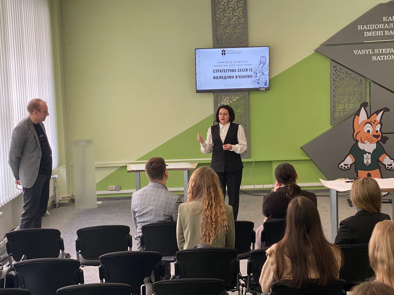 До роботи стратегічної сесії долучилася ректор університету Валентина Якубів, яка наголосила на важливості відкритого та інклюзивного підходу до формування стратегічного документа: «Для мене принципово важливо, щоб стратегія формувалася не як документ “для звіту”, а як спільне бачення майбутнього університету, яке народжується в діалозі, дискусії та співтворенні. Я переконана, що стратегія не формується зверху вниз, а тільки із залученням усіх учасників освітнього процесу: викладачів, дослідників, студентів, управлінців, партнерів і громади. Саме молоді науковці сьогодні задають темп змінам — вони відчувають глобальні тренди, працюють у міжнародному середовищі, формують нову академічну культуру та бачення розвитку науки в університеті».
