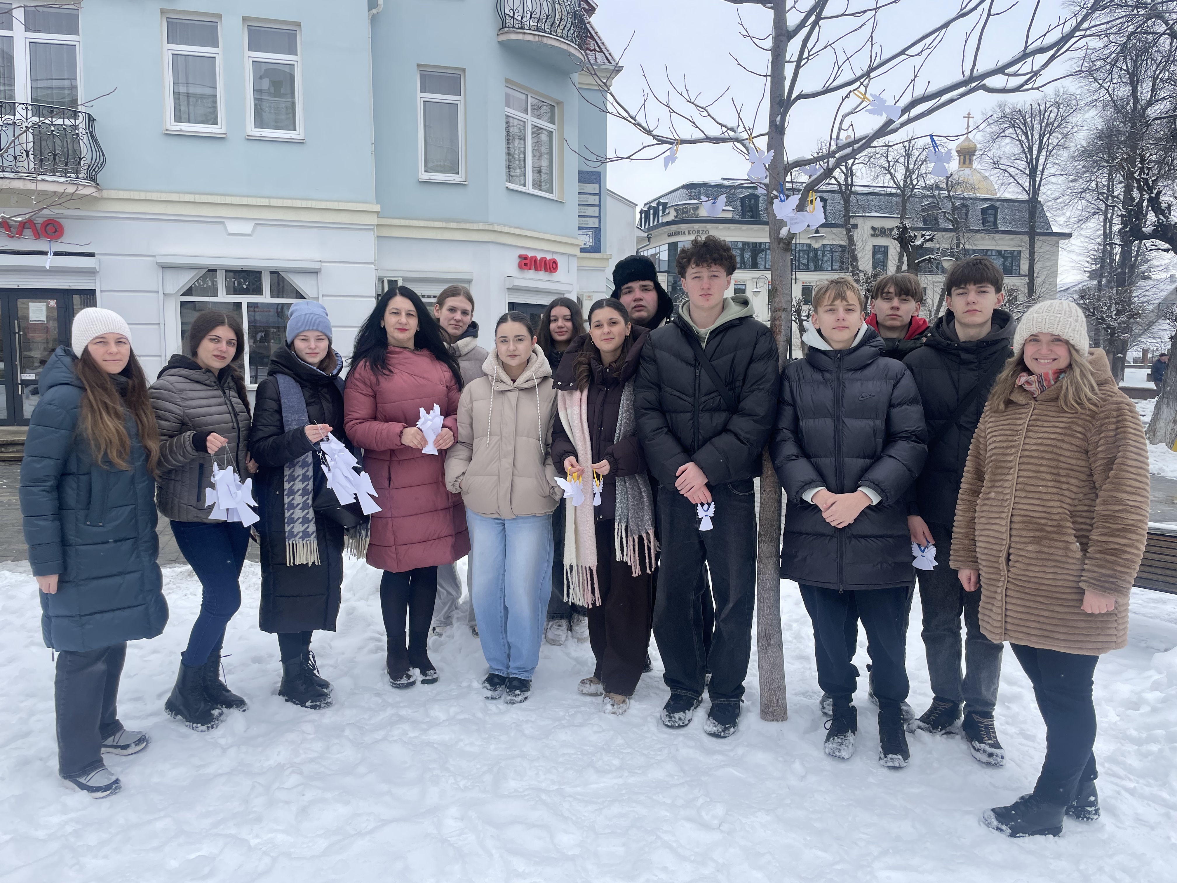 «Ми зобовʼязані памʼятати подвиг Героїв Небесної Сотні, це генетична памʼять поколінь. Вирізаючи ангеликів та розвішуючи їх на деревах в центрі міста, ми тихо нагадуємо всім ціну свободи. Памʼять формує сильних, завжди памʼятаймо про це», – звернулася до присутніх директорка центру карʼєри, доцентка кафедри філології Коломийського інституту Галина Волощук.