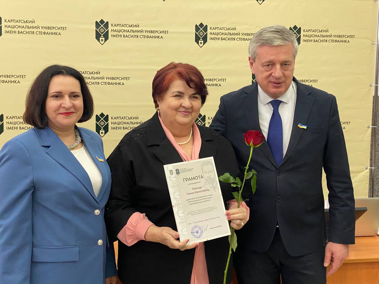 • За багаторічну плідну співпрацю, відданість справі освіти та підтримку ініціатив університету грамотами відзначено директорку Коломийського ліцею №9 Коломийської міської ради Івано-Франківської області Ганну Пасічну, начальницю відділу освіти Отинійської селищної ради Світлану Бурмай, а також заступницю директора Коломийського ліцею №8 Коломийської міської ради Івано-Франківської області Уляну Волощук.