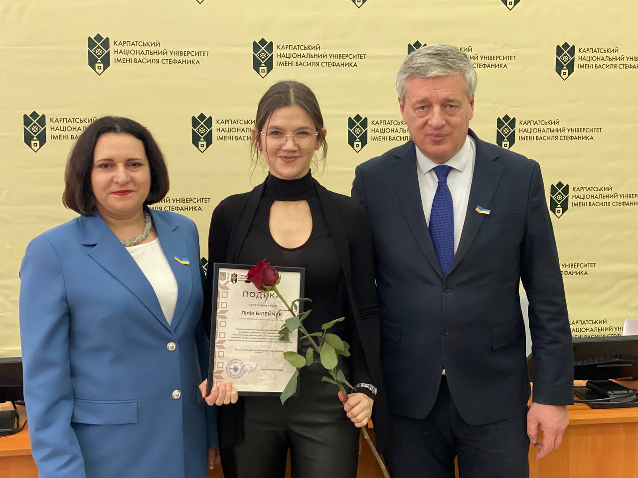 Після цього ректорка університету Валентина Якубів та голова Вченої ради Ігор Цепенда урочисто вручили відзнаки науково-педагогічним працівникам і партнерам університету.