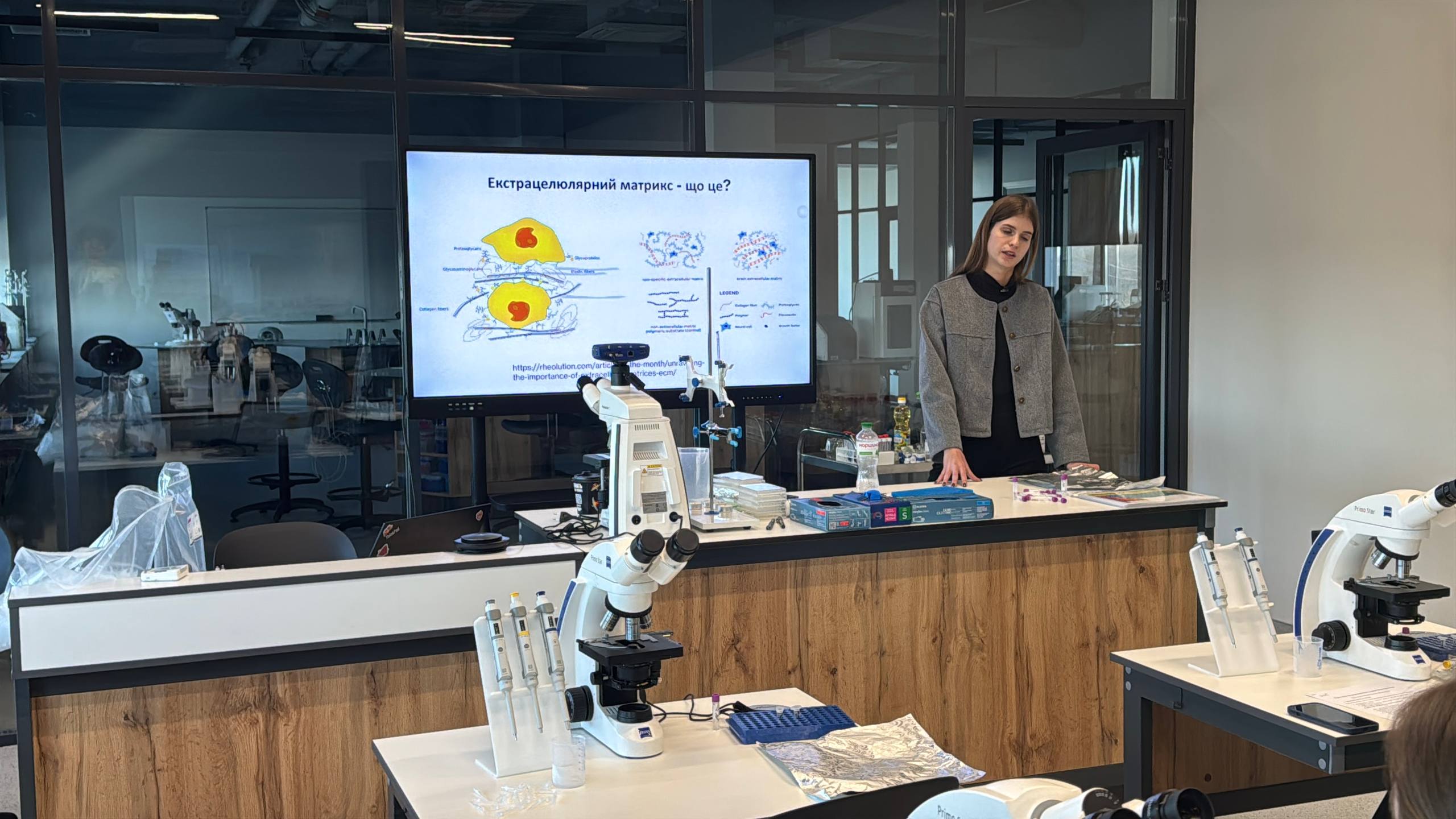 Також студенти мали можливість поспілкуватися з представниками інноваційної стартап-компанії Preci, яка демонструє приклад трансформації наукових ідей у реальні технологічні рішення. Учасники дізналися про етапи створення стартапу, виклики, з якими стикаються молоді біотехнологічні компанії, та перспективи розвитку галузі в Україні.
