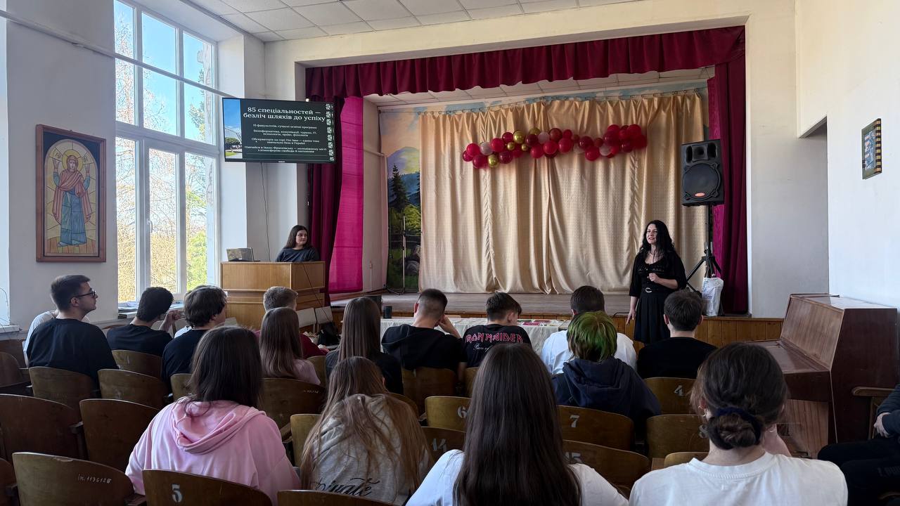 Під час зустрічей директорка Центру професійної кар’єри Галина Волощук розповіла старшокласникам про освітні програми та факультети університету, міжнародні можливості для студентів, участь у програмах академічної мобільності, зокрема Erasmus+, а також про перспективи здобуття подвійних дипломів.