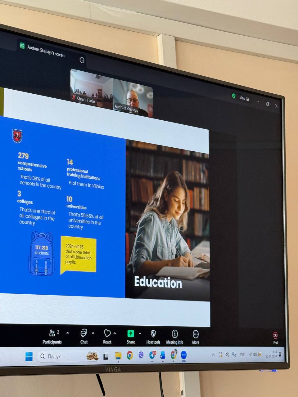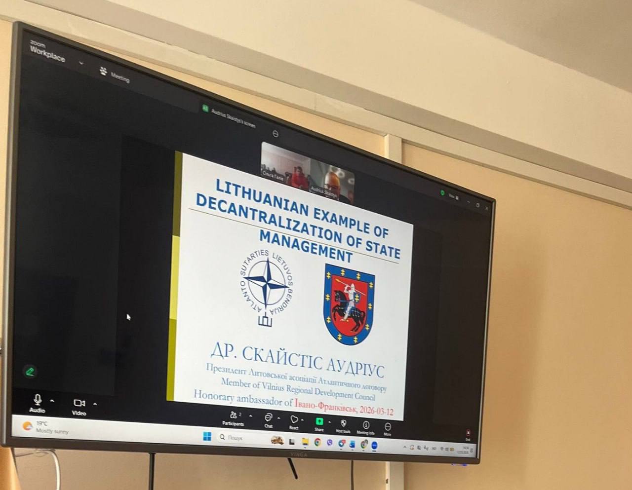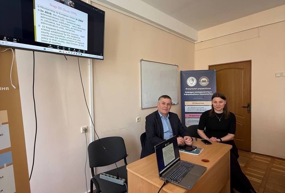 На кафедрі публічного управління та адміністрування відбулася онлайн-зустріч студентів із представником Литви — Аудріусом Скайстисом (Audrius Skaistys), доктором права, доктором філософії, президентом Литовської асоціації атлантичного договору, депутатом Вільнюського муніципалітету, заступником голови Центральної ради Союзу стрільців Литви та керівником юридичного відділу Національного платіжного агентства при Міністерстві сільського господарства Литви.