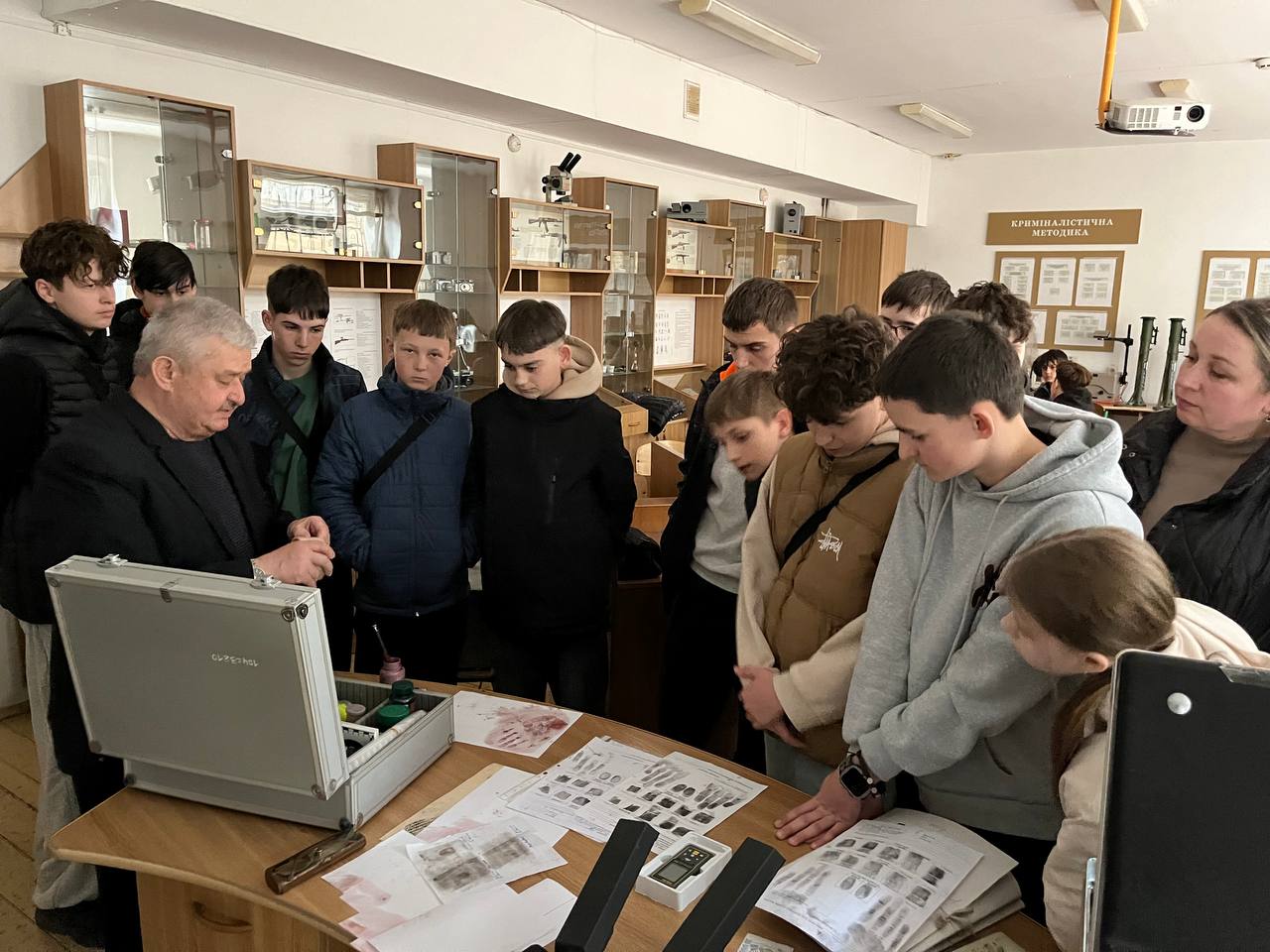 Цікавою частиною зустрічі стало залучення здобувачів освіти до криміналістичних заходів на базі лабораторії ННЮІ, де всі охочі мали змогу спробувати себе в ролі експертів-криміналістів.