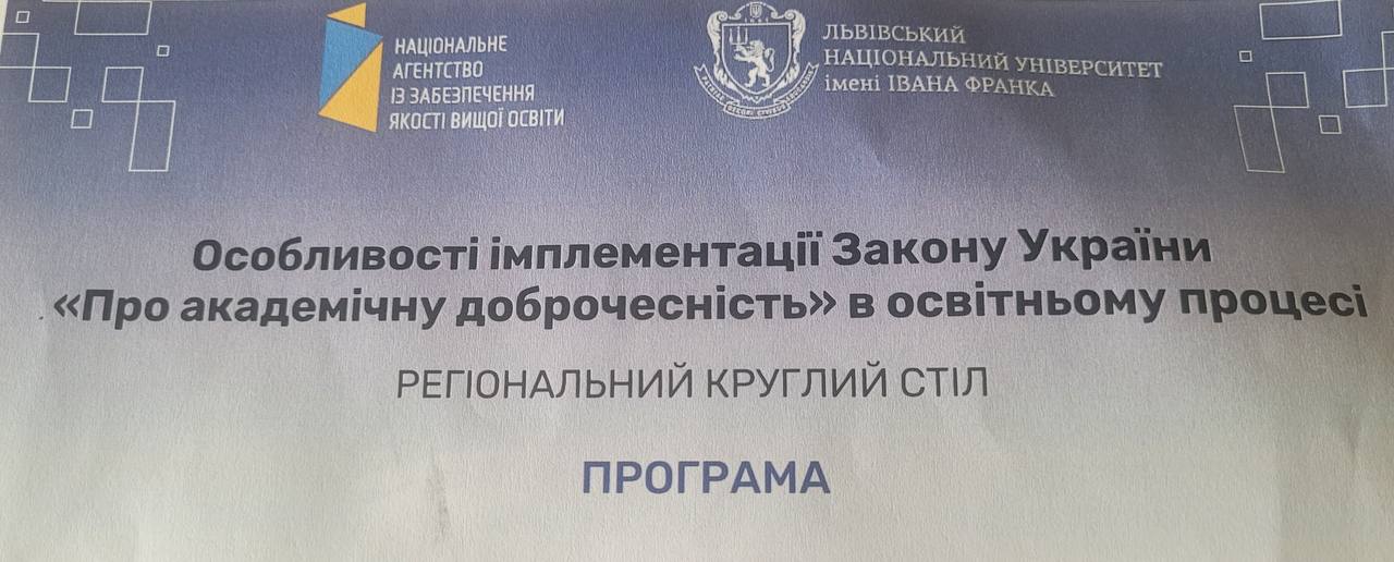 На базі Львівського національного університету імені Івана Франка відбувся регіональний круглий стіл на тему «Особливості імплементації Закону України «Про академічну доброчесність» в освітньому просторі». Організатором заходу виступило Національне агентство із забезпечення якості вищої освіти (НАЗЯВО).