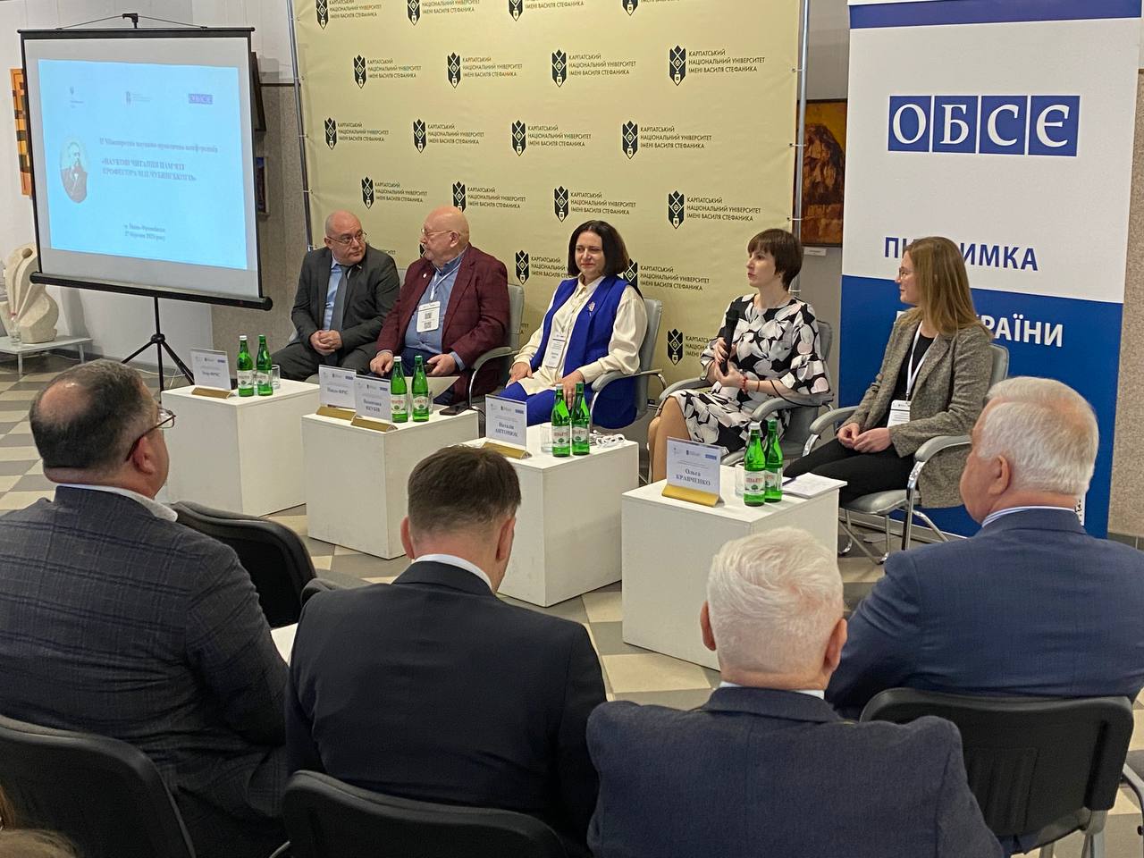 На початку конференції пристуніх привітали: Валентина Якубів — ректор університету, доктор економічних наук, професор; Наталія Антонюк — заступник голови Касаційного кримінального суду у складі Верховного Суду, доктор юридичних наук, доцент; Ігор Фріс — народний депутат України, кандидат юридичних наук; Ольга Кравченко — координатор проєктів Програми підтримки ОБСЄ для України.