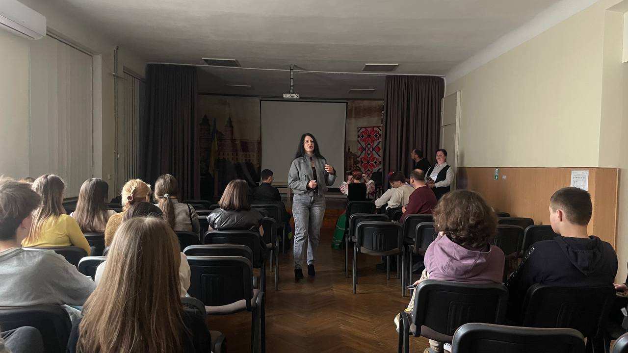 Жива розмова, запитання, обговорення і щире зацікавлення. Учні активно включалися у спілкування, ділилися думками та відкривали для себе нові горизонти навчання. Про університет, його освітнє середовище та можливості для студентів розповіла директорка Центру професійної кар’єри та освіти Галина Волощук. Вона акцентувала на найважливішому: сучасні освітні програми, міжнародна мобільність, зокрема участь у програмі Erasmus+, навчання за програмами подвійних дипломів, а також унікальні можливості, які пропонує університет, серед них навчання та дослідження на базі високогірної обсерваторії на горі Піп Іван.
