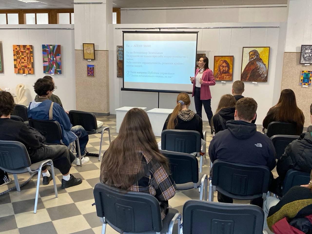 Інтерактивну частину забезпечили науковиці Центру професійної кар’єри та освіти Мар’яна Данилюк та Ірина Воробець, які провели для учнів Quest про університет. У форматі гри школярі дізнавалися цікаві факти про навчання, студентське життя та традиції університету.