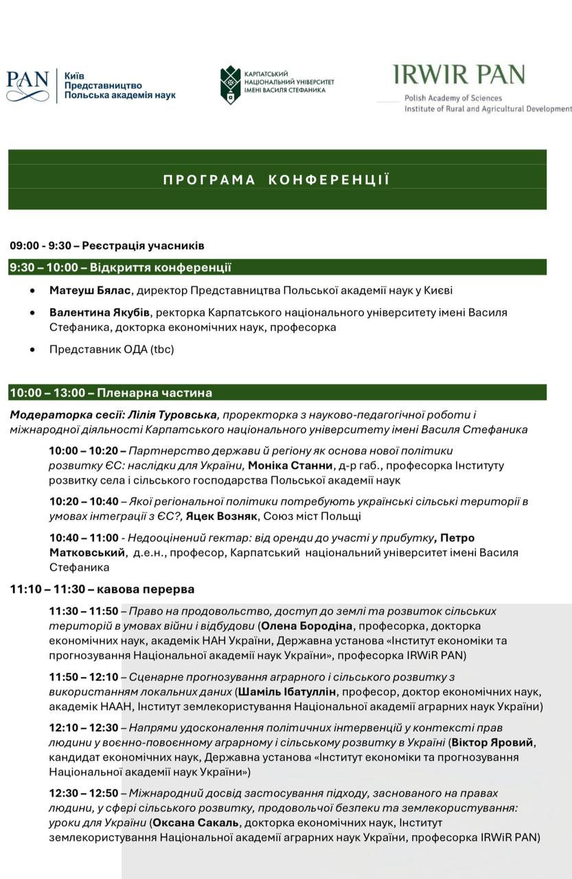 27 квітня 2026 року у Карпатському національному університеті імені Василя Стефаника відбудеться міжнародна конференція «Аграрний і сільський розвиток України на шляху до ЄС: регіональний та місцевий вимір».