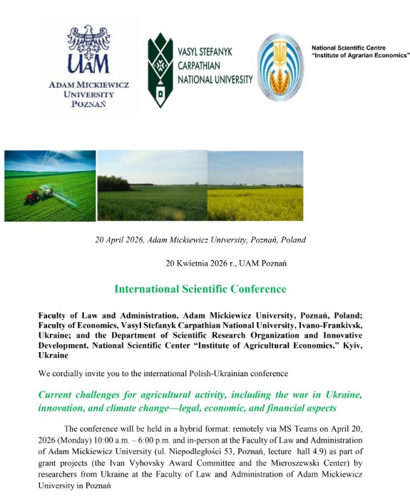 Конференція проходила у гібридному форматі — офлайн у Познані та онлайн на платформі MS Teams — і об’єднала провідних науковців, експертів і практиків аграрної сфери.