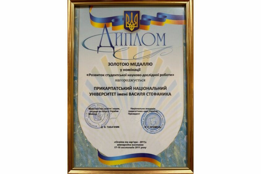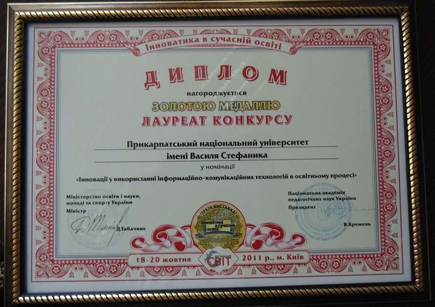 Диплом нагородження Золотою медаллю конкурсу "Інноватика в сучасній освіті" 2011