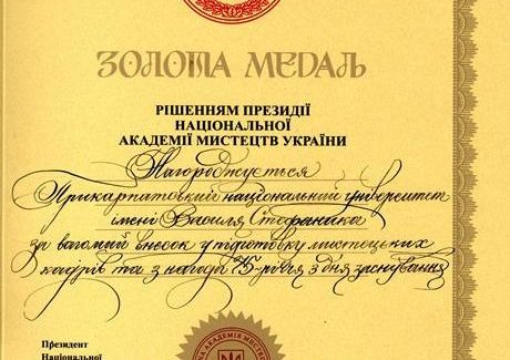 Золота Медаль Національної Академії мистецтв України 2015 р.