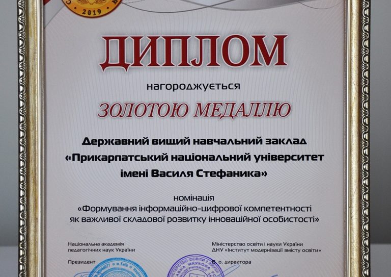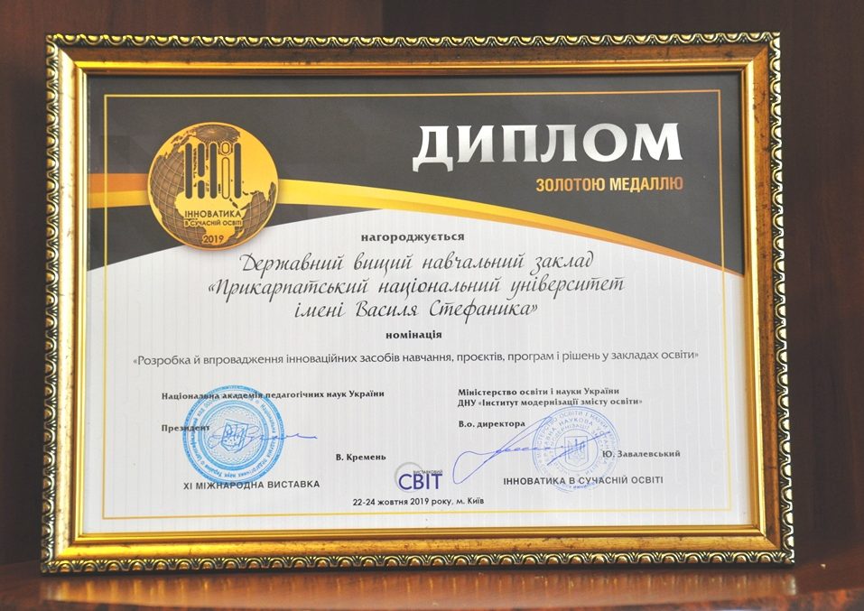 Золота медаль "Інноватика в сучасній освіті 2019"