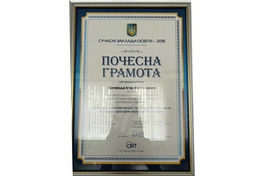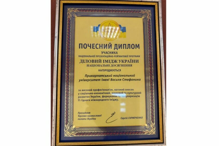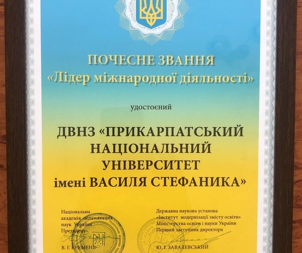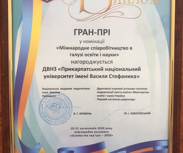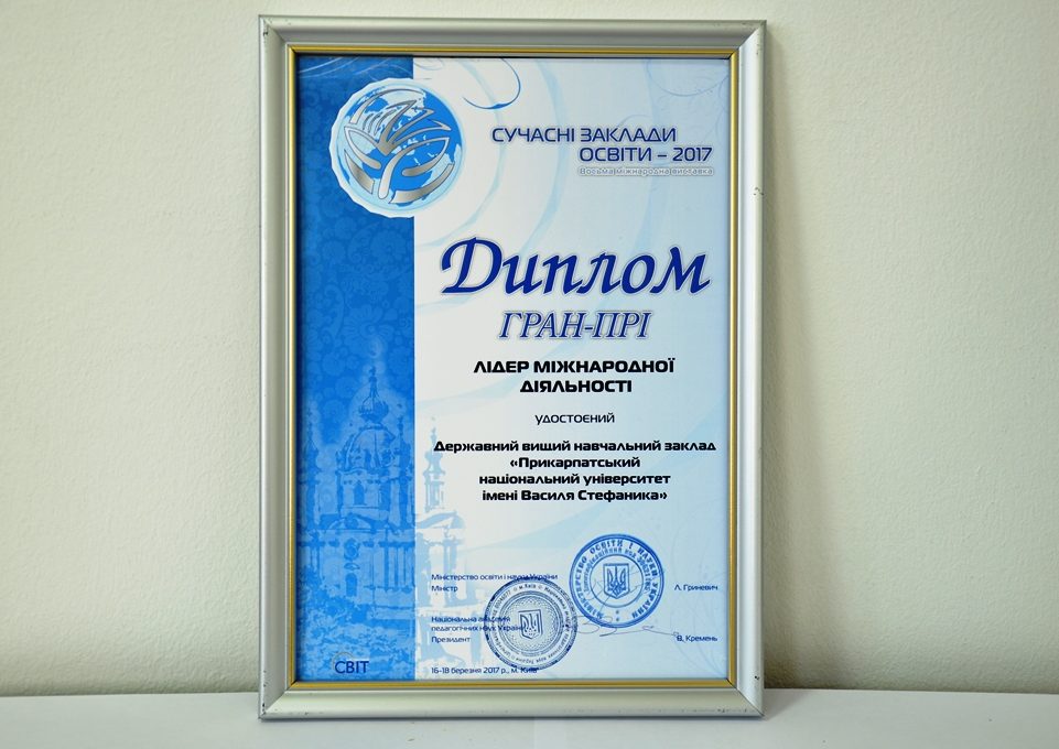 Диплом Гран-прі "Лідер міжнародної діяльності" 2017
