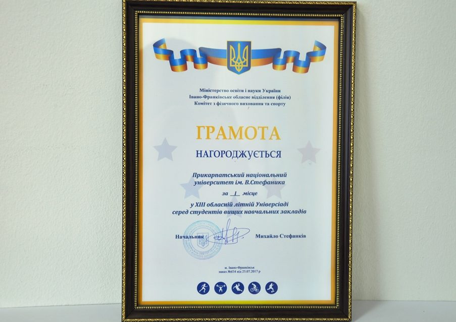 Грамота за I-е місце в XIII обласній літній Універсіаді 2017